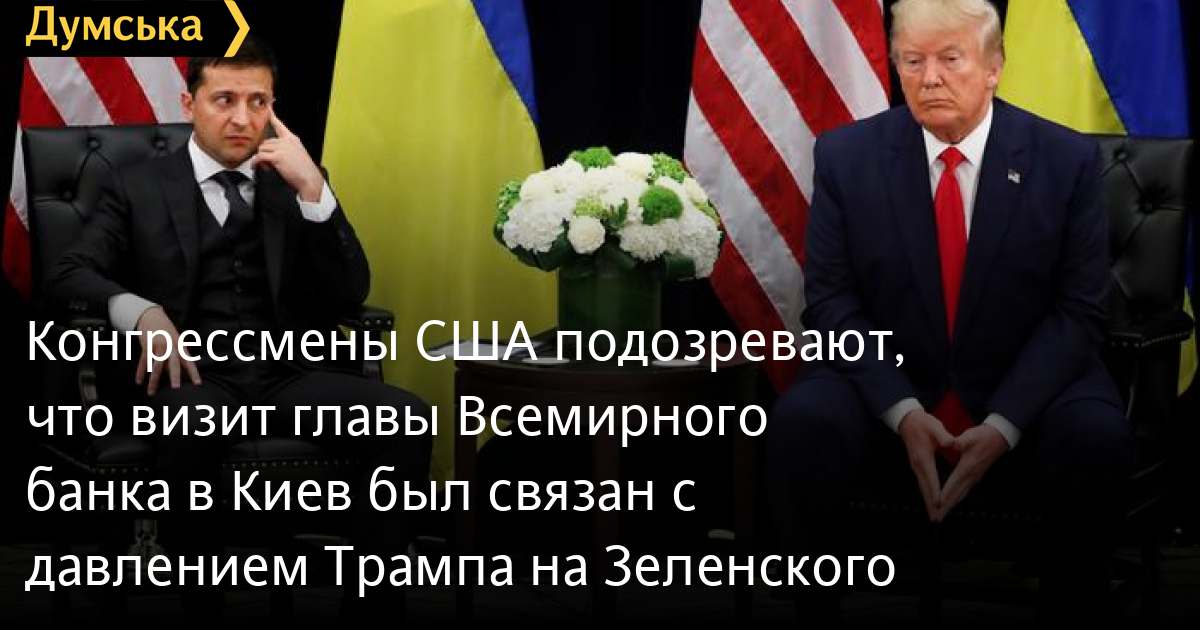 Конгрессмены США подозревают, что визит главы Всемирного банка в Киев был связан с давлением Трампа на ЗеленскогоШестеро конгрессменов от Демократической партии США обратились с письмом к президенту Всемирного банка Дэвиду Мальпассу, в котором выразили свою обеспокоенность его визитом в Украину в августе 2019 года. Конгрессмены выразили обеспокоенность тем, что его встреча с Владимиром Зеленским совпала с активной стадией усилий президента Трампа оказать давление на президента Украины с целью открыть уголовное преследование его политических оппонентов. Об этом говорится в письме, подписанном конгрессменами Денни Гэком, Джимми Гаймсом, Эдом Перлмуттером, Хуаном Варгасом, Дженнифер Вэкстон и Стивеном Линчем, передает «Голос Америки». Конгрессмены задали Мальпассу девять конкретных вопросов о его поездке в Украину. В частности, их интересовало, сопровождал ли Мальпасса кто-то, кроме должностных лиц банка на встречах, присутствовала ли на всех встречах директор Всемирного банка по вопросам Беларуси, Молдовы и Украины Сату Кахконен, обсуждались ли вопросы семьи Байденов и Burisma, и были ли отсрочки и задержки в утверждении проектов для Украины в течение последних шести месяцев. Отметим, что по традиции президента Всемирного банка назначает американская сторона. Мальпасса, который ранее занимал высокую должность в Минфине США, назначили на этот пост в апреле 2019 года по инициативе президента США Дональда Трампа. Напомним, осенью прошлого года разразился скандал после того, как стало известно, что во время телефонного разговора Трамп требовал от Зеленского провести расследование деятельности в Украине сына влиятельного политика от Демократической партии, бывшего вице-президента Джо Байдена, который является главным конкурентом Трампа на предстоящих выборах. Позднее Белый дом обнародовал стенограмму скандального разговора, которая подтвердила, что Трамп просил Зеленского изучить дело в отношении сына Байдена. СМЕРТЬ РОССИЙСКИМ ОККУПАНТАМ! Заметили ошибку? Выделяйте слова с ошибкой и нажимайте control-enter |