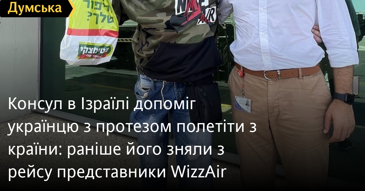 Консул в Ізраїлі допоміг українцю з протезом полетіти з країни: раніше його зняли з рейсу представники WizzAirКонсул України в Ізраїлі допоміг нашому громадянину з протезом ноги, якого кілька днів тому висадили з рейсу стюардеси компанії WizzAir, вилетіти до Європи. Про це заявив речник Міністерства закордонних справ України Олег Ніколенко. Він виправив інформацію, яка раніше з'явилася у ЗМІ, — чоловік ніколи не служив у Силах оборони України та інвалідність здобув унаслідок ДТП багато років тому. «Незважаючи на офіційні вибачення авіакомпанії, вважаємо, що права українського громадянина було порушено. Очікуємо завершення службового розслідування, притягнення винних до відповідальності та виконання авіаперевізником зобов'язань перед пасажиром. Будемо тримати це питання на контролі», — заявив Ніколенко. Помітили помилку? Виділяйте слова з помилкою та натискайте control-enter |