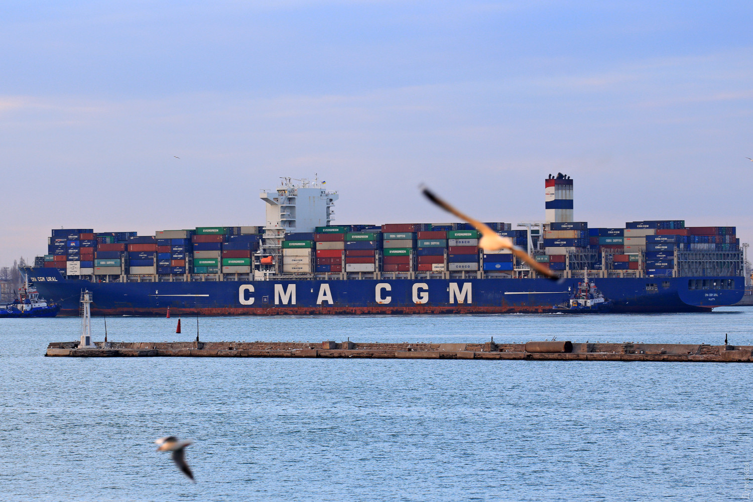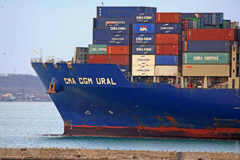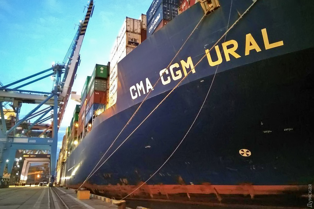 Трехсотметровый контейнеровоз CMA CGM Ural (флаг Мальта) прибыл сегодня вечером в Одессу.