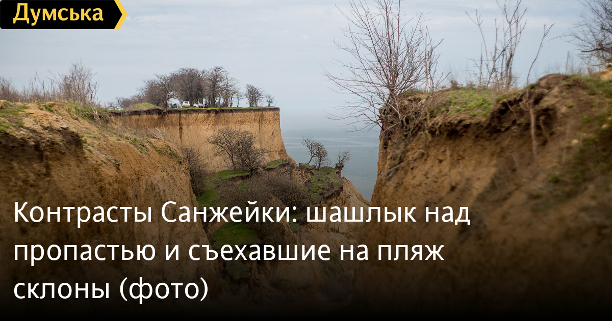 Стихия продолжает поглощать отвесные склоны, что не смущает любителей экстремального шашлыка. Несмотря на то, что опасную зону — а это более 300 метров — отгородили бетонными блоками, отдыхающие проезжают как можно ближе к краю, чтобы насладиться видами, выпить рюмочку и закусить ее дымящимся кусочком мяса.