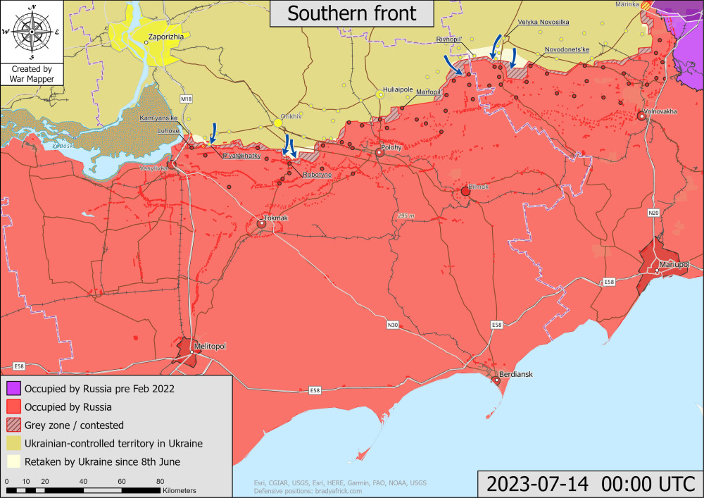На півдні Донецької та Запорізької областей за тиждень вдалося повернути майже 11 квадратних кілометрів. Загалом же з початку контрнаступу українське військо звільнило майже 180 кв. км - це більше площі Одеси (162,4 кв. км).