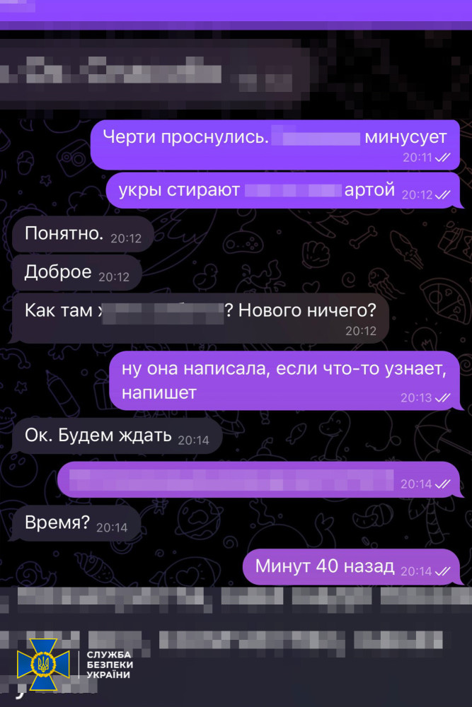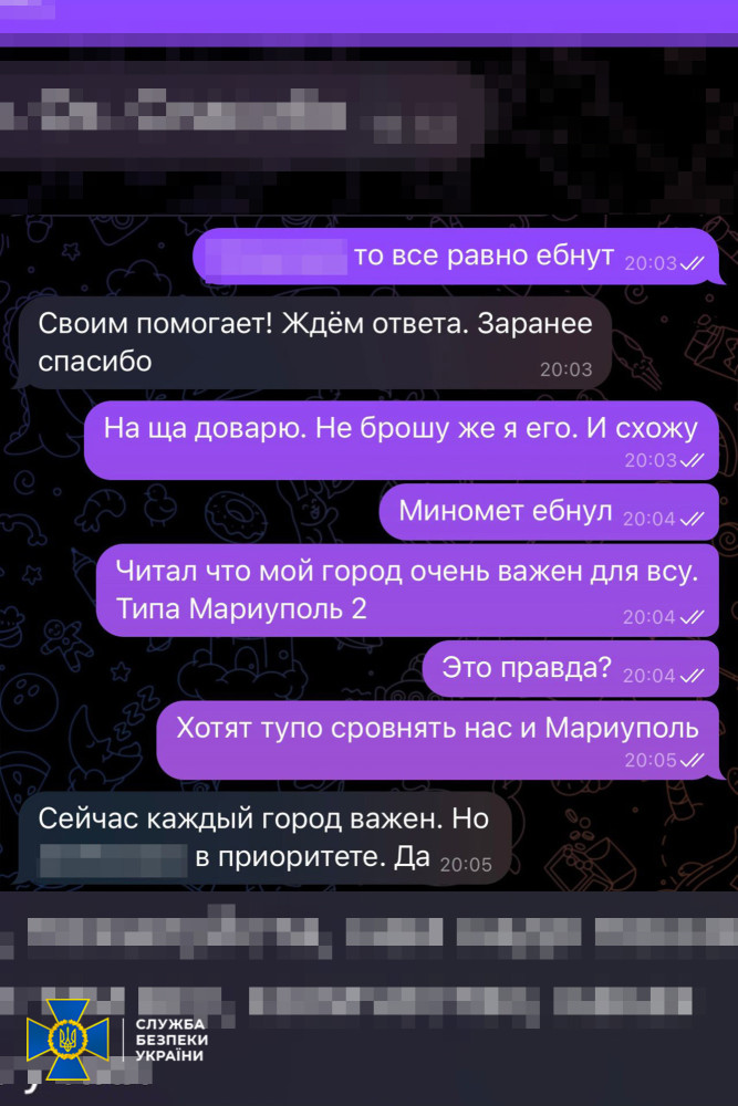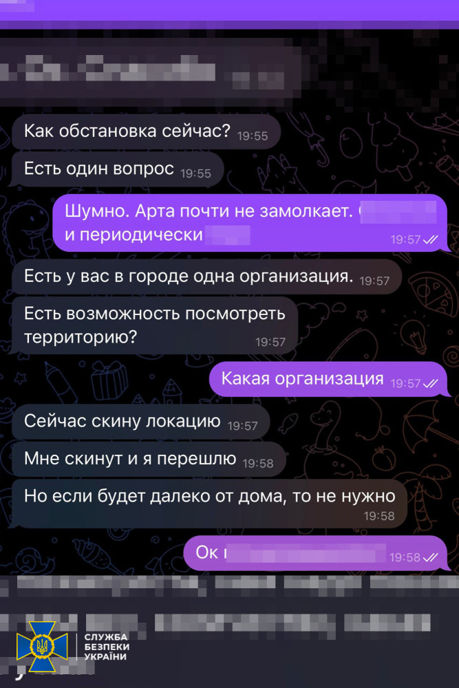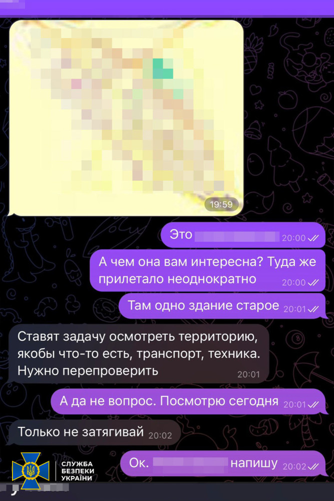 Для комунікації агент використовував заздалегідь відпрацьований анонімний канал в одному з месенджерів. Розвідувальну інформацію відправляв у вигляді медіафайлів з детальним описом об’єктів та місцевості, де вони розташовані.