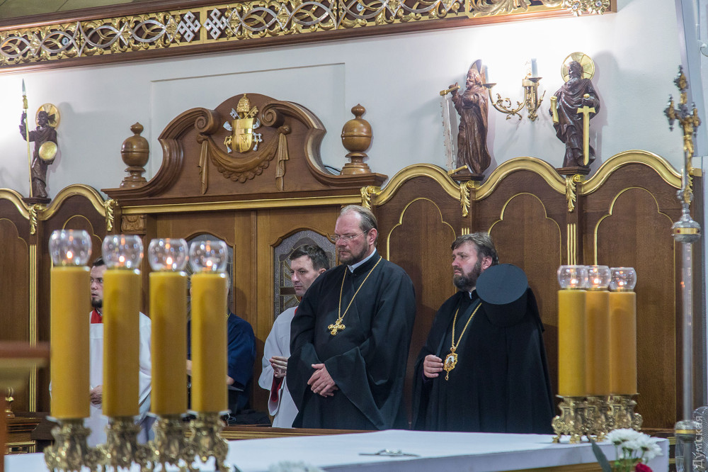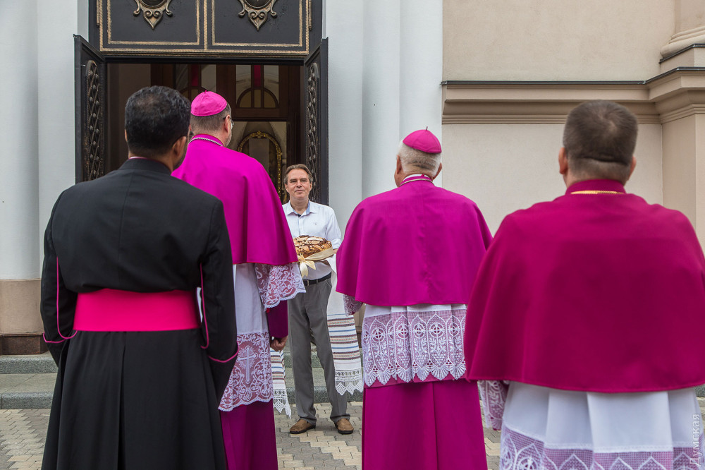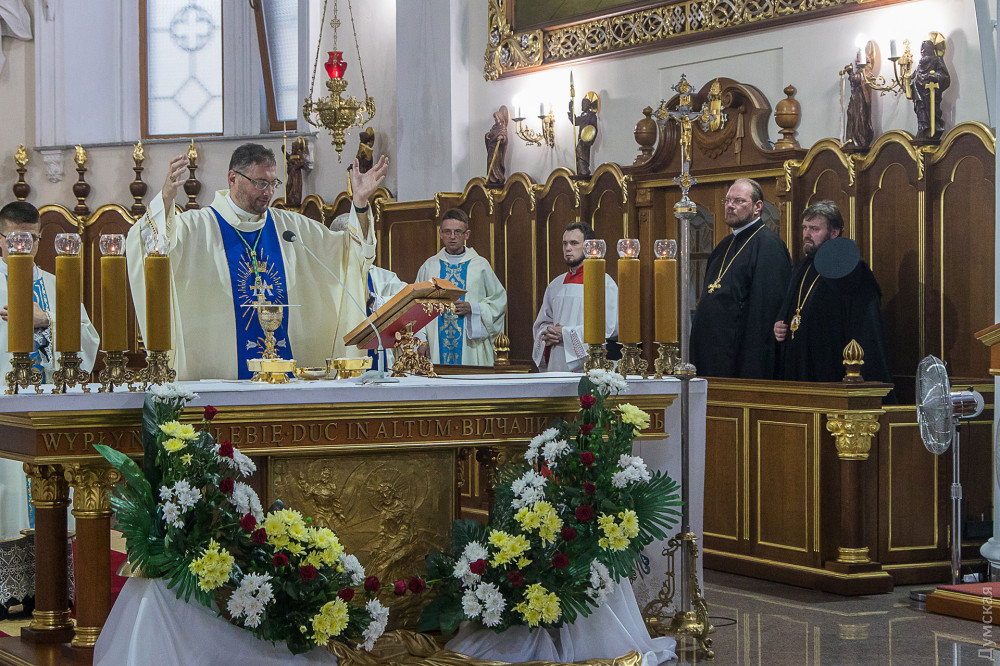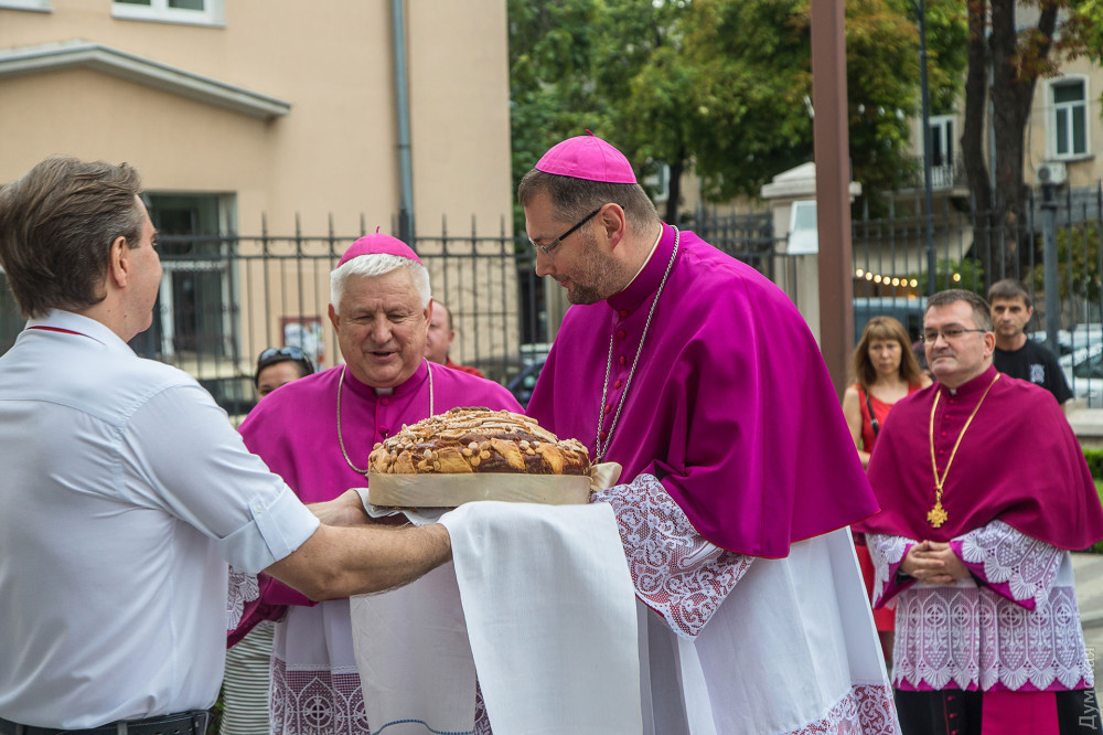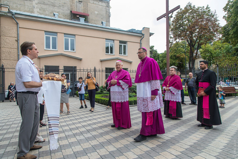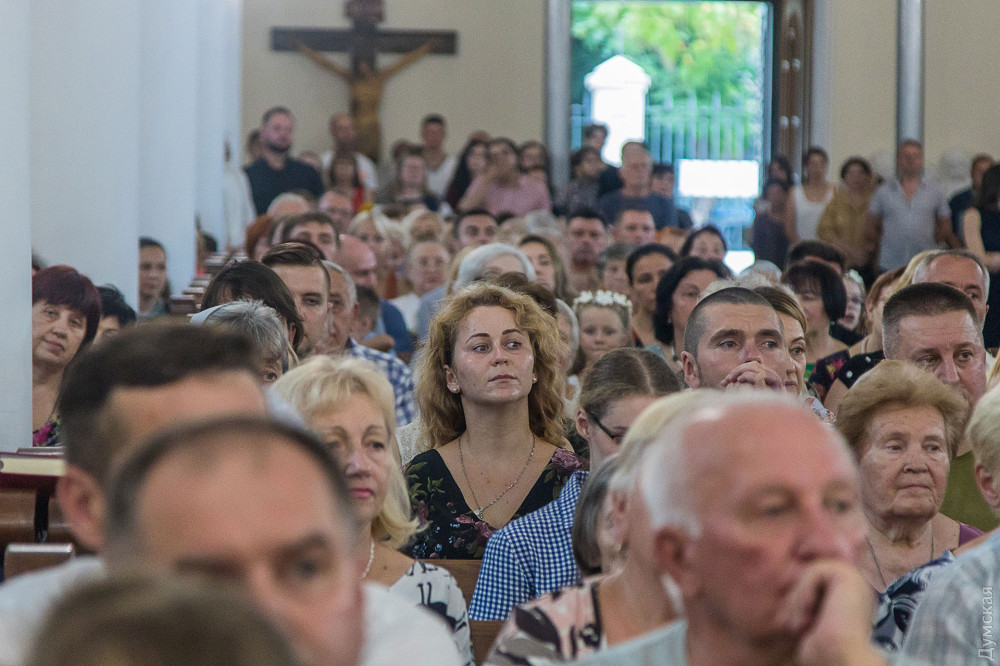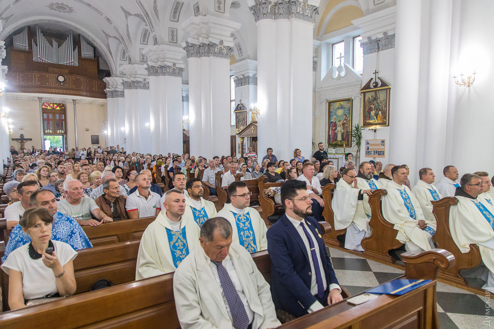 Храм заповнили святково вбрані католики та представники інших конфесій з букетами квітів та бажанням послухати святу месу, бути причетними до історичної події. Звичайно, наше місто стало у ці дні центром тяжіння для багатьох духовних осіб.