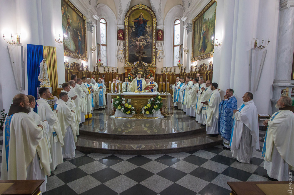 В одеській катедрі відбулася урочиста коронація ікони Внебовзяття Пресвятої Діви Марії. Корону для цього посвятив папа Франциск на початку серпня у Ватикані.
