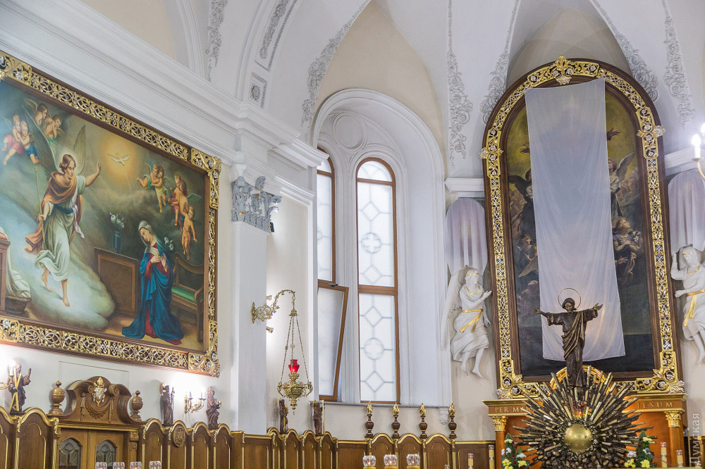 Ікона Внебовзяття Богородиці – це дар Ольги Наришкіної (Потоцької), копія картини Рафаеля, робота баварського художника Фішера, зроблена спеціально для собору. Ця ікона вважається чудотворною та була чудесно збережена під час радянського переслідування, яке було особливо відчутним 1931 року, коли храм закрили, вівтар розбили, коштовні речі викрали. Частину церковного начиння вдалося врятувати. Вівтарний образ переховували у костелі Святого Петра на Гаванній, що не припиняв своєї роботи. У серпні 2003 року вівтарний образ Внебовзяття урочисто перенесли до катедри.