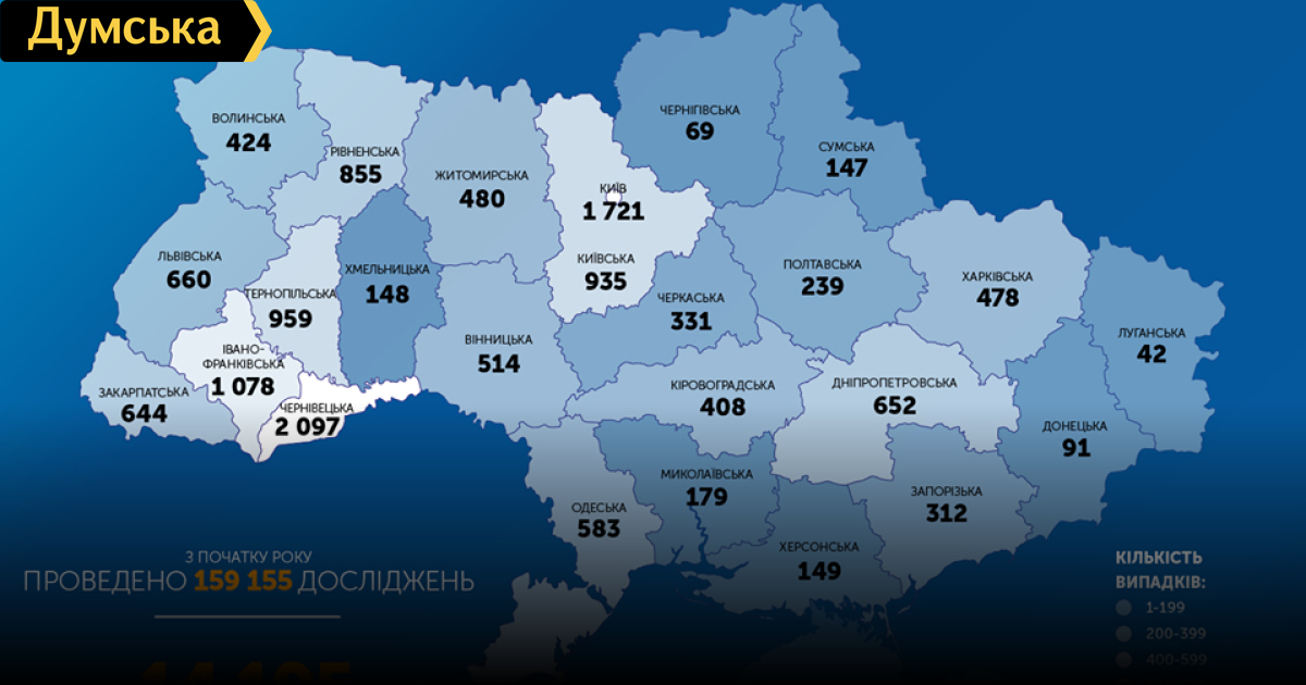 По состоянию на 9 утра 8 мая в Украине лабораторно подтверждено 14 195 случаев заражения коронавирусной инфекцией. Об этом сообщила пресс-служба Центра общественного здоровья МОЗ. За минувшие сутки в стране зарегистрировано 504 новых случая заболевания. На сегодняшний день полностью излечились от коронавируса 2 706 пациентов, а умерли – 361. Заболеваемость по областям: Винницкая – 514 Волынская – 424 Днепропетровская – 652 Донецкая – 91 Житомирская – 480 Закарпатская – 644 Запорожская – 312 Ивано-Франковская – 1078 Кировоградская – 408 Киевская – 935 Львовская – 660 Луганская – 42 Николаевская — 179 Одесская – 583 Полтавская – 239 Ровненская – 855 Сумская – 147 Тернопольская – 959 Харьковская – 478 Херсонская – 149 Хмельницкая – 148 Черновицкая – 2097 Черкасская – 331 Черниговская – 69 Киев — 1721 СМЕРТЬ РОСІЙСЬКИМ ОКУПАНТАМ! Помітили помилку? Виділяйте слова з помилкою та натискайте control-enter Новини по цій темі: 4 березня 2023: "Вакцини-довгожителі", або Як щеплення проти COVID-19 перетворилися в Україні на небезпечний ритуал 27 січня 2023: МОЗ зобов`язали опублікувати договори на закупівлю вакцин проти COVID-19: апеляційний суд задовольнив позов журналіста "Думської" 11 січня 2023: За тиждень в Одесі зафіксовано 159 випадків ковіду 4 січня 2023: За тиждень в Одесі зареєстровано 113 випадків ковіду |