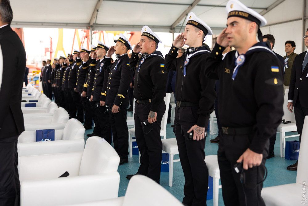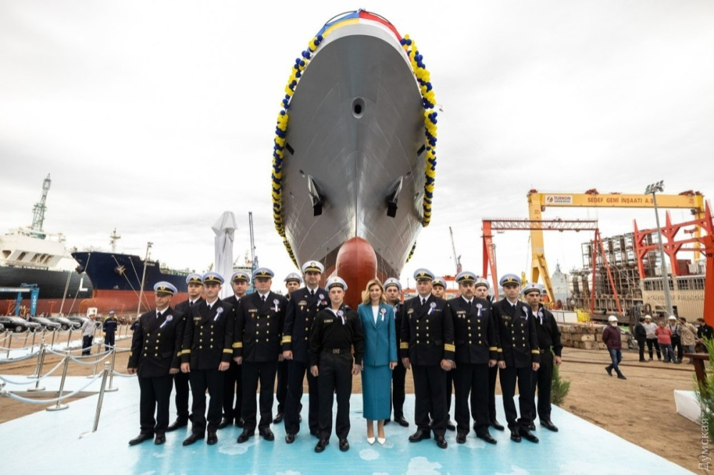 Хрещеною матір’ю корабля стала перша леді України Олена Зеленська.