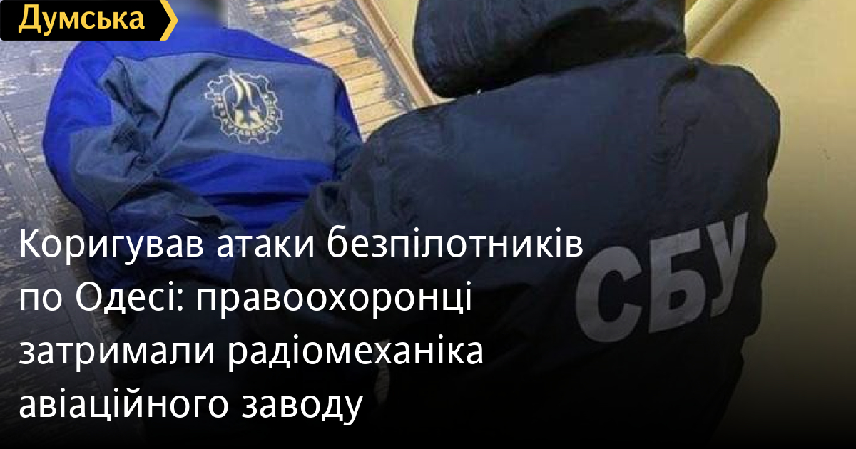 Радіомеханіка Одеського авіаційного заводу, який коригував атаки іранських дронів Shahed по місту, затримали співробітники Служби безпеки України.