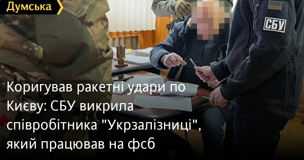 Співробітника «Укрзалізниці», який працював на фсб і коригував ракетні удари по Києву, викрила Служба безпеки України.