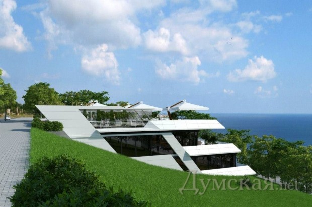 «Предусматривалось строительство трехэтажного здания сложной конфигурации, которое закрывало вид на море. Я видел этот, на мой взгляд, жуткий проект и очень рад, что его не реализовали. Поэтому было предложено подготовить новый проект, с тем, чтобы кафе не изуродовало, а, наоборот, украсило склон. Что и было сделано известным архитектором Сергеем Слюсаренко», — пояснял мэр буквально в прошлую пятницу.