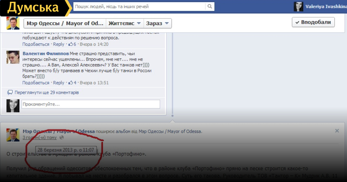 Справедливости ради добавим: на странице мэра указано, что ее ведут совместно с мэром специалисты департамента информации и связей с общественностью Одесского городского совета.