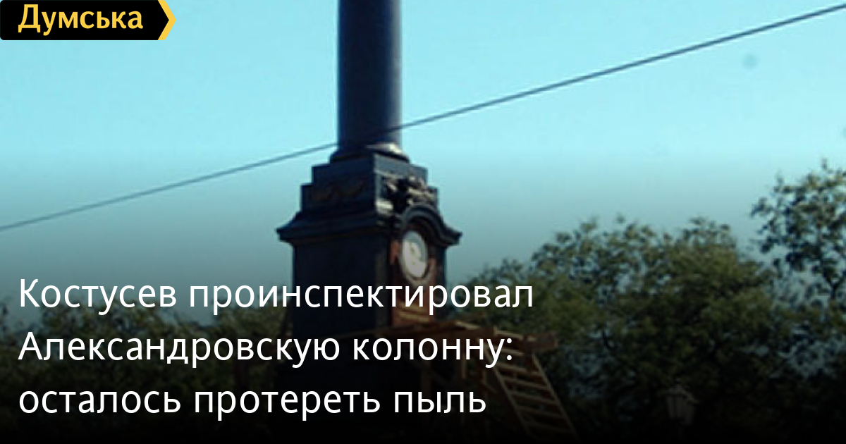 Как сообщается на сайте города, очищен постамент, восстановлены все детали лепки, в том числе — на вершине с двуглавыми орлами и шапкой Мономаха. Сейчас колонну готовят к открытию, осталось только помыть ее и протереть пыль.