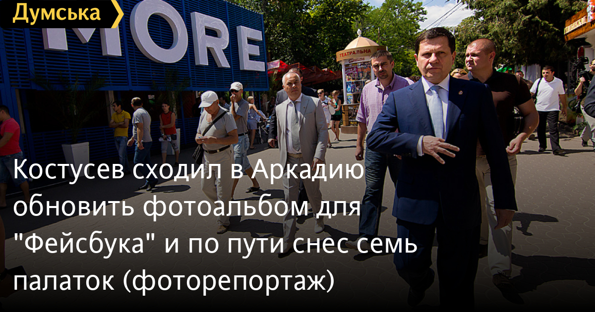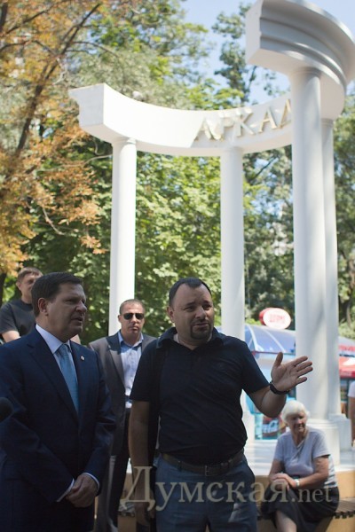 Мэр Одессы Алексей Костусев посетил сегодня главную туристическую мекку города — Аркадию, чтобы вдоволь пофотографировать главную аллею. Мэр пришел аккурат к началу срежиссированного новым начальником управления торговли Олесем Янчуком спектакля «Карающая длань». Журналистов на спектакль доставили специально заготовленным автобусом от гостиницы «Атлантик» на Генуэзской, где городской голова в присутствии прессы инспектировал обновленный сквер.