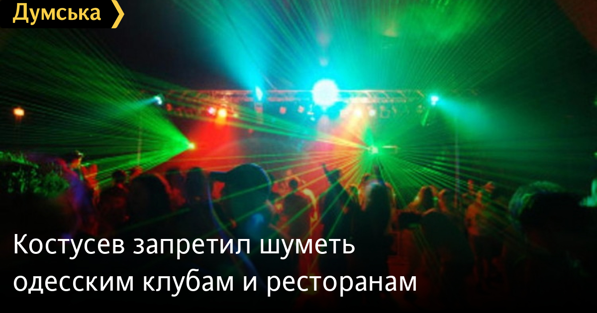 Перед началом нового учебного года мэр Одессы Алексе Костусев подписал распоряжение «О защите населения от вредного влияния шума». Согласно документу, подписанному городским головой 27 августа, одесским барам-ресторанам-дискотекам предлагается поубавить громкость музыки, чтобы не оказывать вредное воздействие на здоровье граждан. «Необходимо обеспечить соблюдение предельно допустимых уровней звучания звуковоспроизводящей аппаратуры и музыкальных инструментов в помещениях и на открытых площадках, а также не превышать допустимый уровень шума в прилегающих к ним жилых и общественных зданиях», — говорится в распоряжении. Контроль за уровнем шума во время «культурно-массовых мероприятий» будут осуществлять милиция, санэпидемстанция, а также вице-мэр Николай Ильченко лично. СМЕРТЬ РОСІЙСЬКИМ ОКУПАНТАМ! Помітили помилку? Виділяйте слова з помилкою та натискайте control-enter |