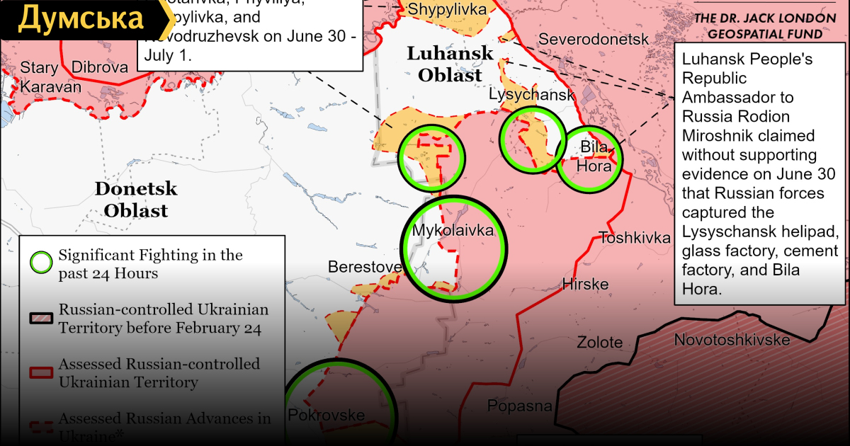 Оккупанты продолжают попытки окружить Лисичанск и перегруппировываются возле Славянска, — Институт изучения войныВойска российских оккупантов еще не достигли автомагистрали T1302 Бахмут-Лисичанск по земле, но мешают украинским силам использовать ее, нанося артиллерийские и авиаудары по оставшимся украинским позициям вдоль дороги. Как сообщают аналитики Института изучения войны, за прошедшие сутки основные усилия захватчиков были направлены на создание так называемого котла между временно оккупированным Изюмом в Харьковской области и Донецкой и Луганской областями. Российские войска продолжали попытки окружить последний крупный город в Луганской области — Лисичанск и вели наступательные действия южнее и юго-западнее города. Кроме того, оккупанты сосредоточились на перегруппировке и улучшении своих тактических позиций к северу от Славянска. Российские силы не проводили подтвержденных наземных атак на севере Харьковской области и продолжали обстреливать украинские позиции к северу от Харькова. СМЕРТЬ РОСІЙСЬКИМ ОКУПАНТАМ! Помітили помилку? Виділяйте слова з помилкою та натискайте control-enter |