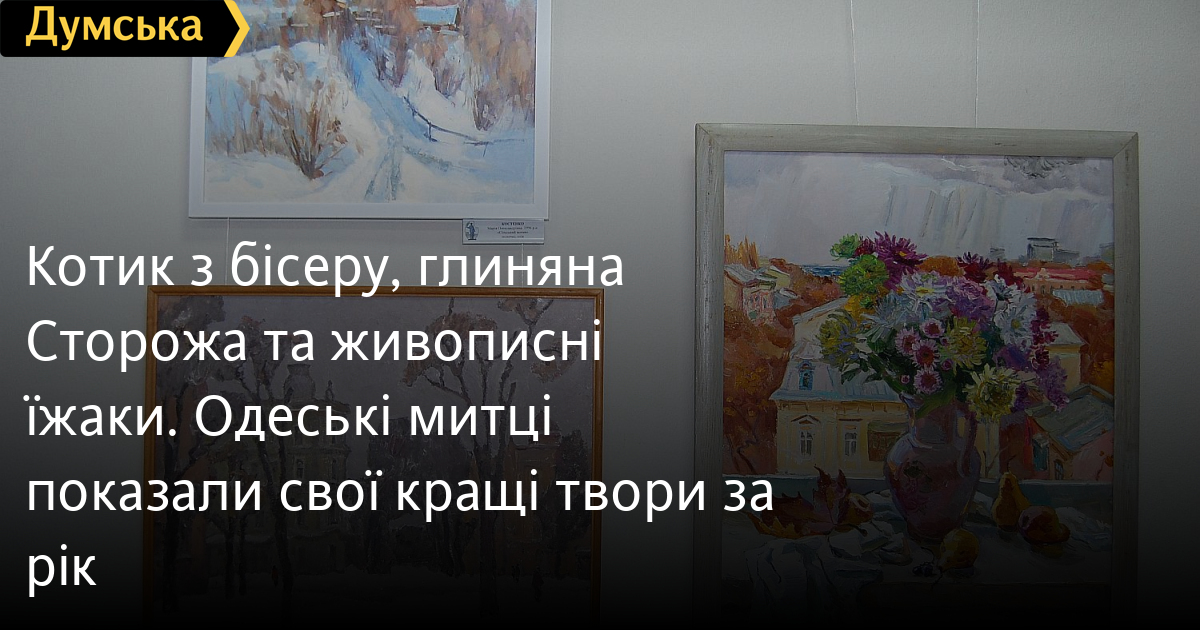 Котик з бісеру, глиняна «Сторожа» та живописні «їжаки». Одеські митці показали свої кращі твори за рікВиставку «Мій кращий твір» відкриличлени Одеської організації Національної Спілки художників України у своїй залі (Торгова, 2). Цього разу, як і звичійно, відбором займався виставком, але за рік можна буде просто принести кращу (на погляд автора) картину або скульптуру чи малюнок, гобелен тощо. Виставком винесе рішення тільки щодо тих, хто не є членом НСХУ, припустимо, дружніх фотохудожників. На теперішній виставці виявилось кілька одеських пейзажів з протитанковими «їжаками», портрети військових у різних техніках, є сумний колаж з текстилю «Блекаут» роботи Сергія Кириченка. Проте більшість робіт позначена позитивом. Дві керамічні собачки («Сторожа» Романа Албула) немов охороняють спокій людей, котик з бісеру та металу, залізний «Мух» виглядають доброзичливо. Світлана Крижевська надала живописний натюрморт з букетом астр, Борис Бєлов – графіку із зображенням квітнучого куща, Дмитро Величко – абстрактну картину, Наталя Будурацька – керамічну «Рибу Тата», Елеонора Александрова – малюнок, на якому з’явилися добрі сутності-берегині, Володимир Василенко – написаний олією букет троянд Нехай дехто злукавив, надавши хороші, але створені не у 2022 році твори, головне, фінальна експозиція року вийшла яскравою та різноманітною. Авторка — Ірен Адлер, фото Олександра Синельникова та Володимира Андреєва Помітили помилку? Виділяйте слова з помилкою та натискайте control-enter Новини по цій темі: 2 листопада 2025: «Амінь, і поїхали»: одеситам показали портрети відьом та козака-характерника (фото) 22 вересня 2025: Артист не може бути поза політикою: Dakh Daughters в Одесі розповіли про відьом, важкі міста і в який час краще жити 19 вересня 2025: Йому довірять робити раму для Караваджо: одеситам показали виставку литовського музейника |