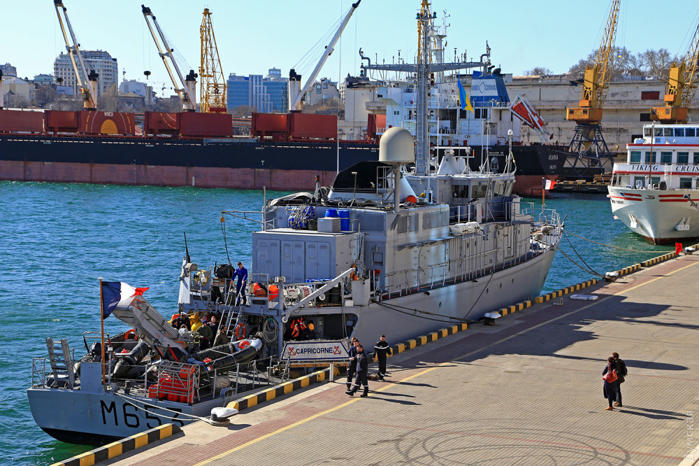 Вчерашнее утро в одесском порту выдалось не по-весеннему холодным и ветреным. Ожидалось, что французский тральщик M653 Capricorne («Козерог») прибудет на одесский рейд к восходу, в 6 утра, но погода внесла коррективы. Борясь с сильным северным ветром, француз опаздывал.