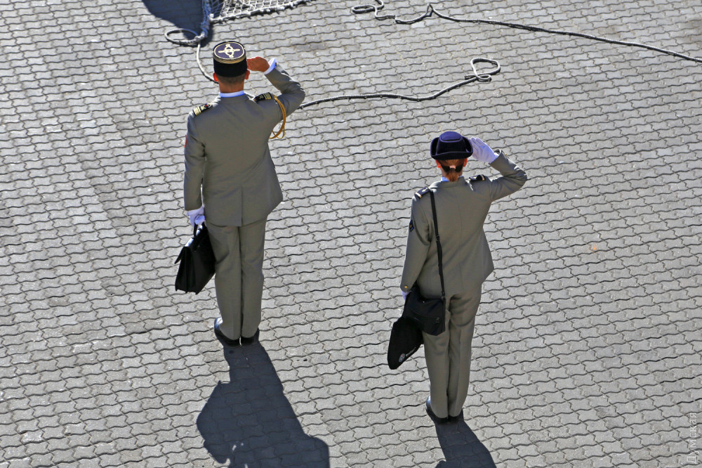 У стенки соотечественника встречал военно-морской атташе и другие французские дипломаты. Под звуки «Марсельезы» делегация замерла в приветствии, а затем атташе поднялся на борт.