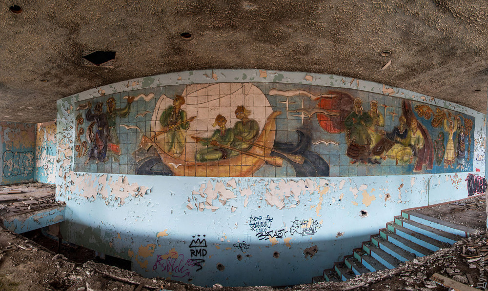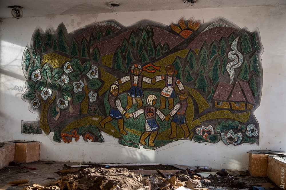К счастью, вандалов не особо интересует монументальное искусство. Мозаичные панно с украинскими национальными мотивами практически не пострадали. Их бы перенести куда-нибудь, спасти