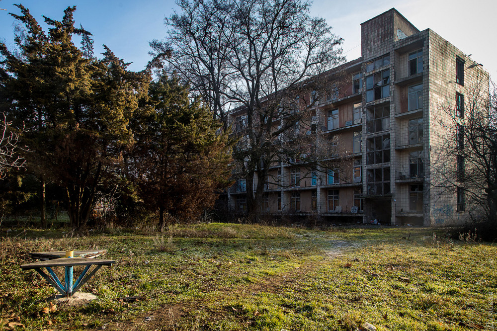 Со времени нашего последнего репортажа из санатория прошло больше полутора лет. С тех пор состояние спальных корпусов лучше не стало. Все, что можно поломать, поломано, все, что можно было украсть, вывезено. В комнатах, где отдыхали трудящиеся, теперь гадят бездомные. Два деревянных здания лежат в руинах — их просто сожгли.