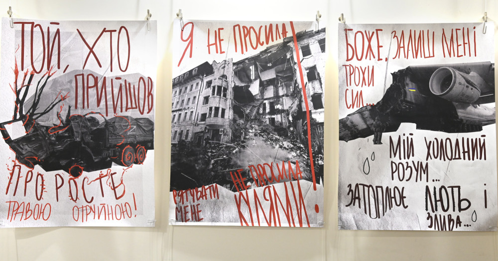 «С первых дней активной фазы войны студенты и преподаватели кафедры графического дизайна Киевского Национального университета культуры и искусства ведут активную работу на информационном фронте, — рассказала на вернисаже в онлайн-режиме заведующая кафедрой Наталья Удрис. — Уже состоялись выставки в Киеве, Хмельницком, Ужгороде, Кракове, Мадриде, Лос-Анджелесе. Созданная работа — это острая реакция на настоящее и моделирование будущего. Участниками проекта стали наши преподаватели, студенты и магистры. Мы создавали плакаты с марта по май, перед вами только часть сделанного. Активируем общественный резонанс в борьбе за победу Украины и визуализируем внутренние переживания людей, которые найдут обратную связь в выставленных работах. Плакатное искусство – это форма визуальной коммуникации, способная сжато и лаконично передать идею без слов, поэтому мы обратились именно к плакату. Сегодня наша группа насчитывает 225 участников, создано около 120 плакатов и другой продукции в виде анимации, стикеров, иллюстраций».
