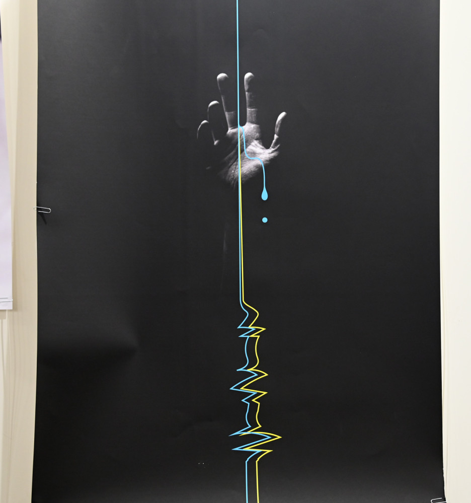 «Мой плакат посвящен людям, которые сейчас защищают нашу землю, — говорит участница выставки из Черноморска Анастасия Федоровская. — А также тем, кто работает на полях и заботится об экономике страны. На плакате изображено поле, окропленное кровью тружеников. Я – выпускница кафедры графического дизайна, продолжаю сотрудничать с педагогами, участвую в выставочных проектах. У меня два высших образования, работаю учителем химии и биологии в общеобразовательной школе. У нас хорошо развито дистанционное обучение, ведь многие ученики разъехались по разным странам, у них очень тяжелое психологическое состояние. И мы, учителя, стараемся их поддержать, не забывая о знаниях».