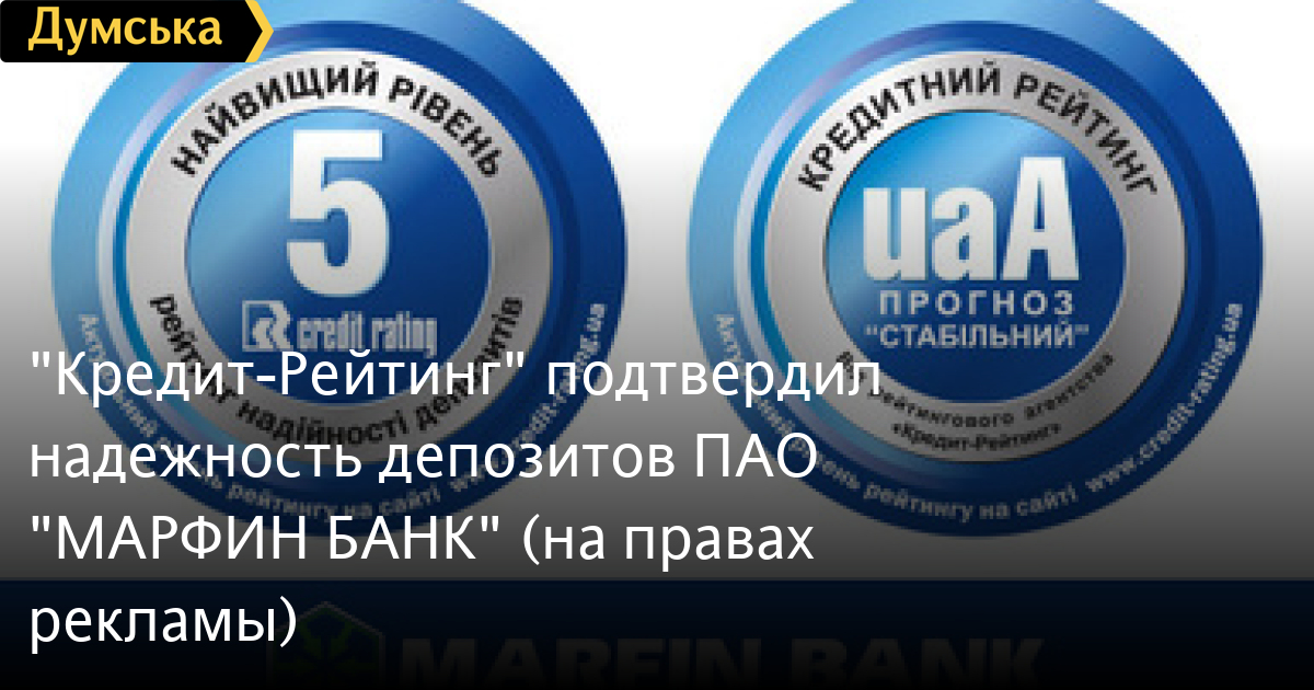 «Кредит-Рейтинг» подтвердил надежность депозитов ПАО «МАРФИН БАНК» (на правах рекламы)25 февраля независимое рейтинговое агентство (РА) «Кредит-Рейтинг» в очередной раз подтвердило рейтинг надежности депозитов Публичного акционерного общества «МАРФИН БАНК» на наивысшем уровне — оценка «5». Высокая оценка рейтинга депозитов ПАО «МАРФИН БАНК» подкреплена традиционными показателями рентабельности, достаточности капитала, системности банка. Напомним, 25 декабря 2015 года РА «Кредит-Рейтинг» также в очередной раз подтвердило и долгосрочный кредитный рейтинг ПАО «МАРФИН БАНК» на уровне uaА. Прогноз рейтинга — стабильный, что указывает на отсутствие предпосылок для его изменения на протяжении 2016 года. Уже в течение нескольких лет, начиная с 2009 года, банк сохраняет высокие рейтинговые позиции, что говорит о ПАО «МАРФИН БАНК» как о надежном партнере и имеющем перспективы в развитии финансовом учреждении. Банк выдерживает все нормативы НБУ и всегда выполнял и выполняет взятые на себя обязательства своевременно и в полном объеме. ПАО «МАРФИН БАНК» не привлекает ресурсы других банков на межбанковском рынке, отсутствует рефинансирование и стабилизационные кредиты от НБУ, что положительно влияет на высокие рейтинговые оценки. Уставной капитал ПАО «МАРФИН БАНК» составляет 435 миллионов гривен. В январе 2016 года банк получил прибыль в размере 8 миллионов 477 тысяч гривен. Информация обо всех рейтингах, присвоенных агентством «Кредит-Рейтинг», находится в информационных системах REUTERS, BLOOMBERG, S&P Capital IQ и TRData. СМЕРТЬ РОССИЙСКИМ ОККУПАНТАМ! Заметили ошибку? Выделяйте слова с ошибкой и нажимайте control-enter |