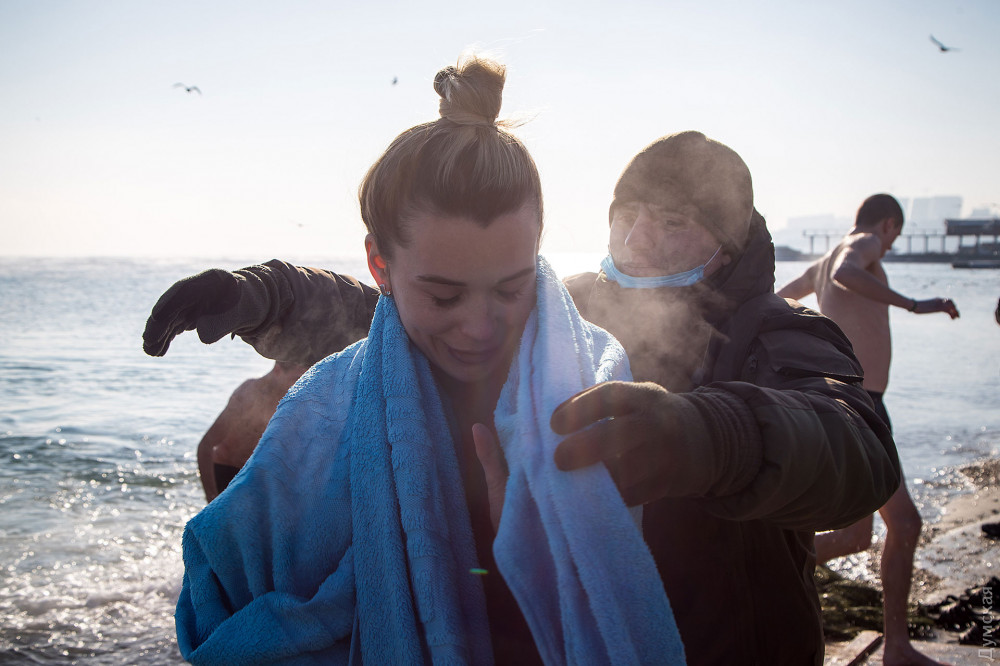 Экстремальные температуры, похоже, не испугали одесситов, полюбивших крещенские купания.