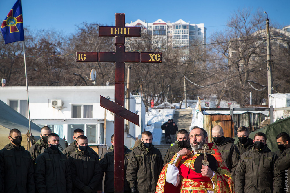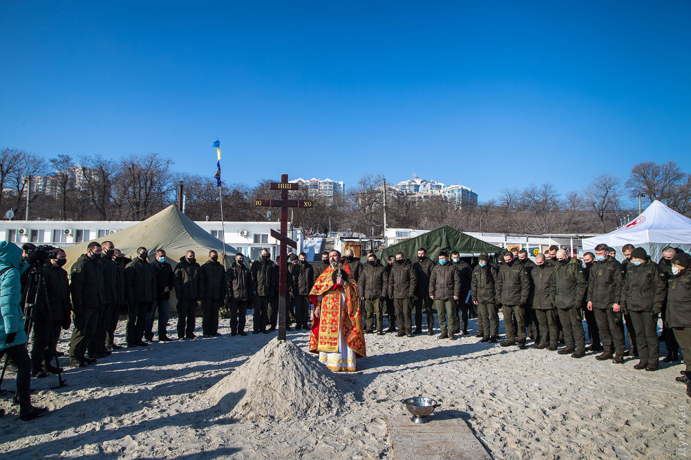 Ровно в 11:00 уже традиционно после молебна окунулись военнослужащие части 3014 Национальной гвардии.