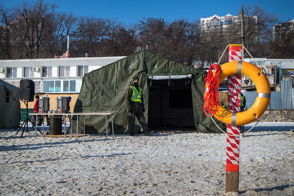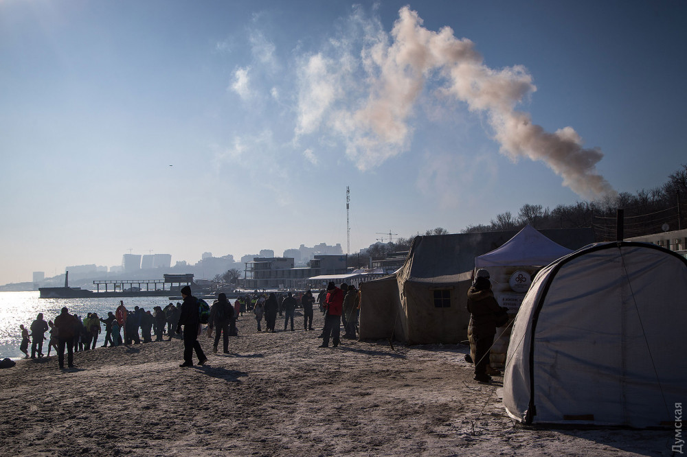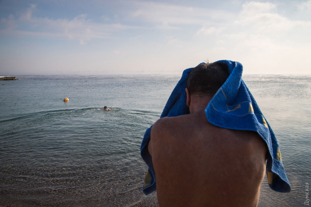 На пляже можно выпить горячий чай или глинтвейн. Часть одесситов переодевается прямо на песке — после выхода из воды есть несколько минут, пока организм не воспринимает холод.