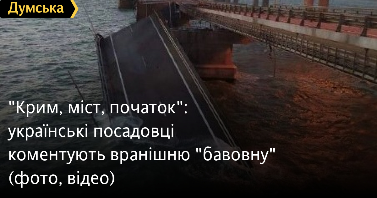 Радник президента України Михайло Подоляк, секретар РНБО Олексій Данілов та офіційному акаунті України в Twitter прокоментували вранішню «бавовну» на Кримскому мості, а російський дмитро медведєв нагадав про судний день.