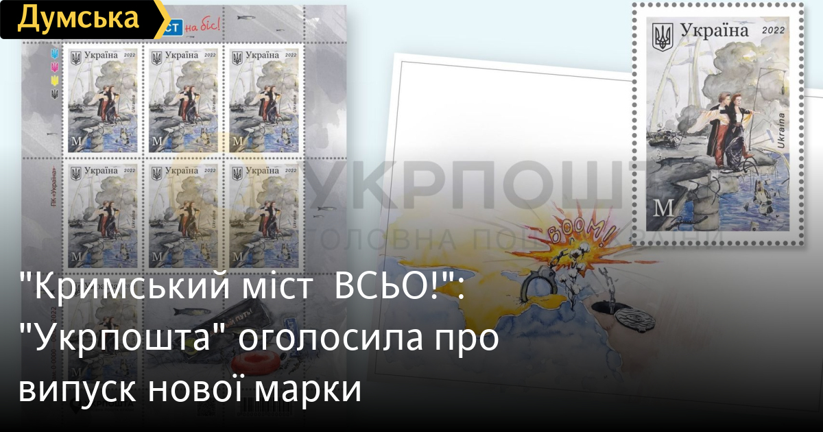 «Укрпошта» оголосила про випуск нової марки із зображенням Кримського мосту, точніше того, що від нього залишиться.
