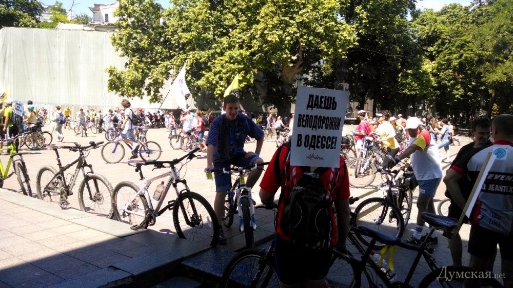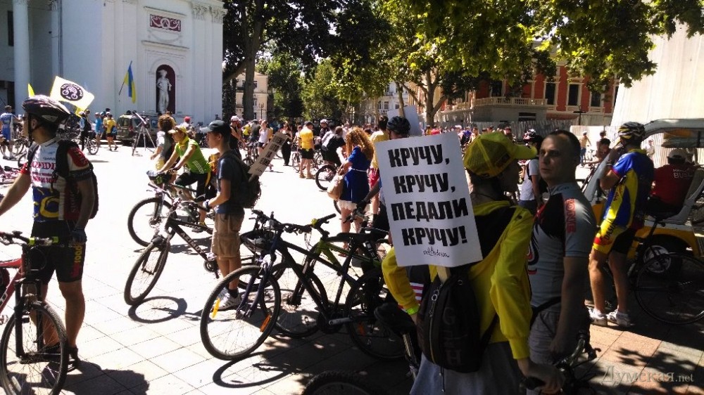 По улицам Одессы прокатилась «Критическая масса» — владельцы двухколесных транспортных средств собрались сегодня вместе, чтобы прокатиться по улицам города. В этом заряженным чистым позитивом мероприятии приняли участие несколько сот человек. Любители экологически чистого транспорта собрались возле здания мэрии. Велосипеды участников украшали лозунги, отражающие требования их владельцев. Главное из них - организация в городе систем велодорожек, которая позволит горожанам комфортно и безопасно передвигаться на двухколесном транспорте. На месте сбора участников «Критической массы» были замечены первые лица города — мэр Геннадий Труханов, его заместитель Анатолий Орловский и секретарь горсовета Олег Брындак. Они пообщались с организаторами, но непосредственного участия в велопробеге не принимали. Колонна велосипедистов стартовала по Ришельевской от Оперного театра. Безопасность участников обеспечивали машины сопровождения ГАИ и представители организации «СЭМПО». СМЕРТЬ РОСІЙСЬКИМ ОКУПАНТАМ! Помітили помилку? Виділяйте слова з помилкою та натискайте control-enter |