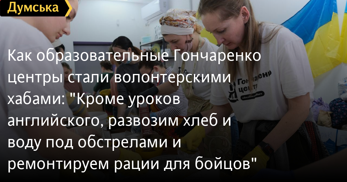 Алексей Гончаренко. Во время войны мы продолжаем работать. Но теперь как сеть волонтерских хабов. Конечно, вторжение россии перевернуло нашу жизнь с ног на голову. В первую очередь «Гончаренко центры» были созданы для реализации образовательных инициатив. Мы бесплатно обучали английскому языку детей и взрослых, но сейчас делаем то, что больше всего необходимо стране, на которую напали враги – помогаем фронту и беженцам.