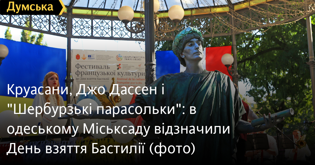 Одесити, які прогулювалися спекотного недільного вечора в центрі міста, отримали можливість долучитися до французької культури. Як передає кореспондент «Думської», у Міському саду відбувся фестиваль з нагоди французького національного свята — Дня взяття Бастилії, який відзначають 14 липня. Черга за шампанським і круасанами розтягнулася на кілька десятків метрів. А ще для гостей просто неба організували виставку картин художниці Анастасії Кириліної. З ротонди лунала музика духового оркестру Одеського муніципального театру імені Олександра Саліка під керуванням Максиміліана Марія Джанетті. Звучали хіти 60-70-х років минулого століття — солісти виконали пісні Джо Дассена і композицію «Шербурзькі парасольки» Мішеля Леграна. Завершила вечір французької культури в Одесі міні-вистава за мотивами мюзиклу «Нотр-Дам де Парі». СМЕРТЬ РОСІЙСЬКИМ ОКУПАНТАМ! Помітили помилку? Виділяйте слова з помилкою та натискайте control-enter |