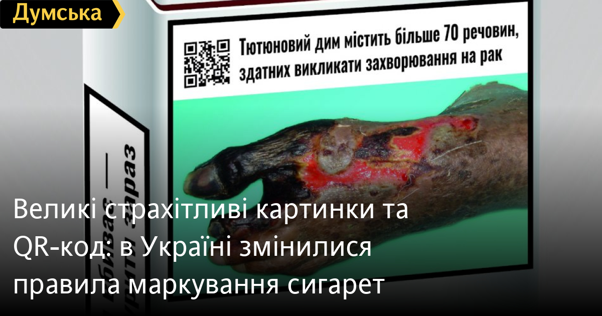 Великі страхітливі картинки та QR-код: в Україні змінилися правила маркування сигаретНові правила маркування сигарет набули чинності в Україні з 11 січня. Тепер виробники зобов'язані розміщувати на упаковках оновлені картинки з текстом медичних попереджень про шкоду і наслідки куріння на 65% площі пачки. Крім цього, там має бути QR-код, який веде на сервіс «Я кидаю курити», повідомили в Центрі громадського здоров'я МОЗ України. Міністерство юстиції України затвердило 14 варіантів тексту та ілюстрацій, розроблених Міністерством охорони здоров'я, технічні вимоги до дизайну і форми маркування, а також порядок нанесення попереджень виробниками тютюнових виробів. Головний державний санітарний лікар України Ігор Кузін нагадав, що за даними ВООЗ, куріння — це третя причина смертності у світі. В Україні ця звичка забирає в середньому 130 тис. життів на рік. За його словами, маркування пачок зображеннями медичних попереджень показало свою ефективність у таких країнах, як Канада та Австралія. «27% населення України старше 18 років — нинішні курці. Медичні попередження на упаковках мотивують кинути палити та зменшують привабливість тютюну для людей без сформованої залежності, особливо серед молоді, — наголосила в.о. керівника відділу профілактики неінфекційних захворювань Центру громадського здоров'я Наталія Гриб. — А QR-код, який веде на сервіс «Я кидаю палити», збільшить ефективність медичних попереджень та підвищить успішність спроб кинути палити». Помітили помилку? Виділяйте слова з помилкою та натискайте control-enter |