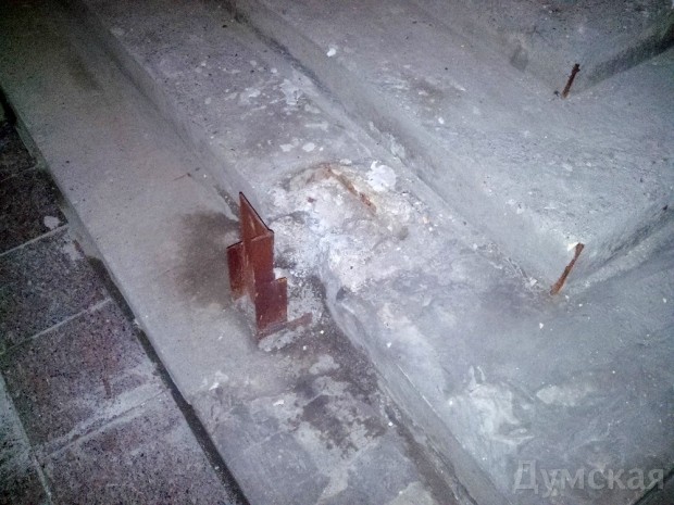 Напомним, вчера город взбудоражила новость о том, что неизвестные лица якобы демонтировали и вывезли в неизвестном направлении крыльцо этого здания — памятника архитектуры. Высказывались различные версии: и о банальной краже «металлолома», и о вывозе старинного артефакта для продажи в качестве антиквариата.