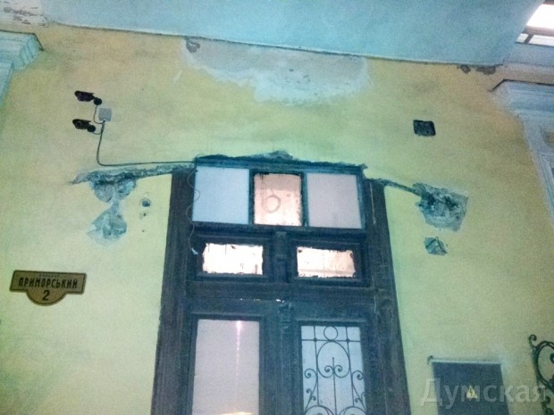 Подъезд старинного дома 1836 года давно нуждался в ремонте, и жильцы, так и не дождавшись милости от ЖКС «Портофранковский», решили сделать его самостоятельно. Планируется заменить прохудившееся покрытие пола, провести новые коммуникации, привести в порядок стены, потолки и входную дверь. Также будет восстановлен первоначальный вид чугунного крыльца.