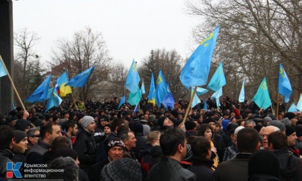 Сессия крымского парламента не состоялась. Глава Меджлиса Руфат Чубаров призвал митингующих расходиться по домам и воздержаться от стычек и участия в провокациях. Крымские татары скандируют «Крым — Украина» и «Банду гэть!» Участники пророссийского митинга, которых оттеснили от парламента, находятся неподалеку.