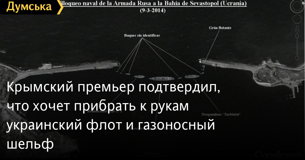 Именующий себя премьер-министром Крыма гражданин Сергей Аксенов заявил, что корабли ВМС Украины, а также флот «Черноморнефтегаз» (компании, добывающей углеводороды на шельфе Черного моря) будут национализированы в полном объеме.