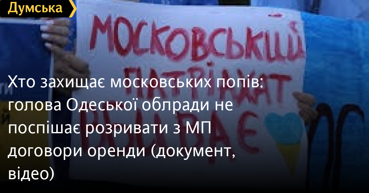 Хто захищає московських попів: голова Одеської облради не поспішає розривати з МП договори оренди (документ, відео)Питання про розірвання договорів оренди приміщень, які займає Московський патріархат, зняли з порядку денного найближчої сесії Одеської обласної ради. Ініціював не винесення його в зал голова зборів, «слуга народу» Григорій Діденко, повідомила Юлія Чухало з «Європейської Солідарності». Депутатам пропонували звернутися до президента, Верховної ради та обласної військової адміністрації із закликом розірвати договори оренди та/або користування релігійних споруд, що перебувають у комунальній та державній власності, з тими організаціями, які не зазначають у своїй назві приналежність до церкви за межами України. Зокрема йдеться про представників Московського патріархату. «ОПЗЖ і «слуги народу» стали на захист російської православної церкви в Україні й не хочуть навіть розглядати питання про розірвання договорів оренди для РПЦ на сесії облради. І представники «Батьківщини» також їх підтримали, на жаль. І все це відбувається на другий рік повномасштабної війни», — заявила Чухало, яка є авторкою звернення. При цьому, десять обласних рад не тільки внесли цей проєкт рішення до порядку денного, а й підтримали його, додає вона. «У п'ятницю, на сесії облради, я винесу питання з голосу! Кожен депутат облради зможе продемонструвати своє обличчя і свою готовність у тилах захищати «русскій мір» поки триває війна, а на фронті гинуть люди», — каже Чухало. Нагадаємо, минулого року звернення до центральних органів влади про заборону діяльності Московського патріархату не підтримала й абсолютна більшість депутатів Одеської міськради. СМЕРТЬ РОСІЙСЬКИМ ОКУПАНТАМ! Помітили помилку? Виділяйте слова з помилкою та натискайте control-enter