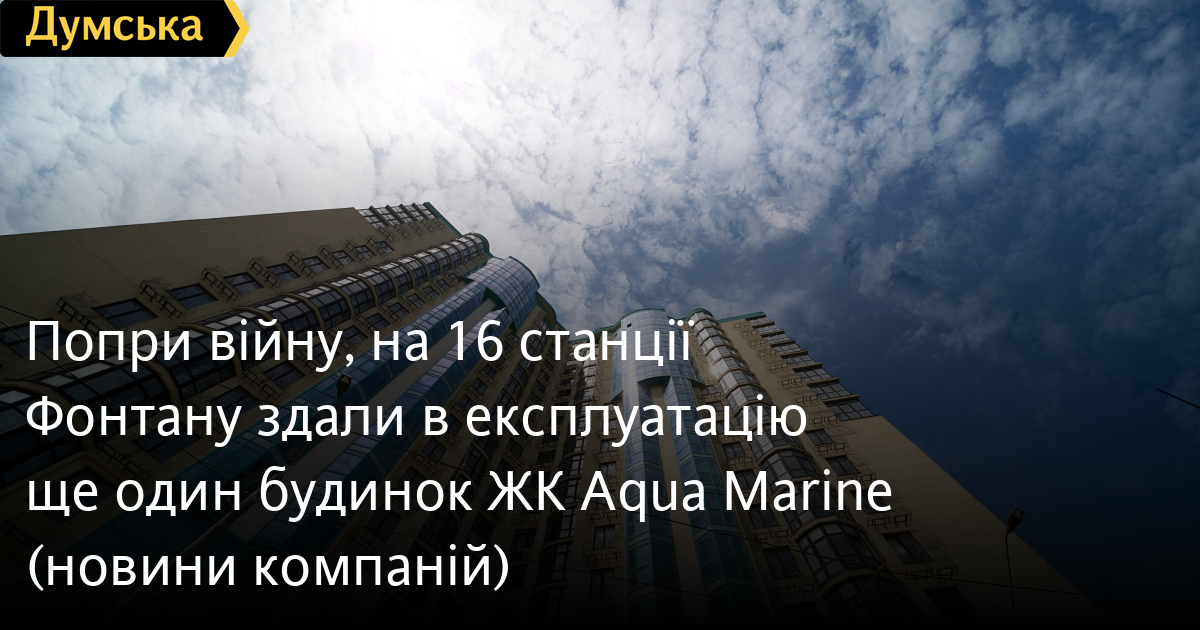Попри війну, на 16 станції Фонтану здали в експлуатацію ще один будинок ЖК Aqua Marine (новини компаній)Одеська будівельна корпорація «КУБ» ввела в експлуатацію 44 тисячі квадратних метрів ЖК Aqua Marine, що на 16 станції Великого Фонтану. Відповідний сертифікат про готовність будинку 3 забудовник отримав від Державної інспекції архітектури та містобудування України. Як повідомили у корпорації, шлях до здачі об'єкта був непростий. Але сьогодні квартири готові зустріти своїх мешканців. Зараз у будинку завершується оздоблення холу. До комплексу вже підведені всі комунікації, а його обслуговуванням займається професійна керуюча компанія. «Ми вдячні кожному інвестору, який продовжував вірити у нашу корпорацію «КУБ» та чекав завершення зведення будинку 3 ЖК Aqua Marine. Цей шлях був дійсно непростим. Проте завдяки всім нашим зусиллям та професійній команді, нам вдалося досягти потрібного результату. ЖК Aqua Marine має розвинену інфраструктуру. На території є два супермаркети, зовсім поруч чудова набережна Золотий берег, кафе та ресторани. Розвиток нашого комплексу буде продовжуватися й надалі», — зазначив голова корпорації «КУБ» Олег Невзоров. ЖК Aqua Marine являє собою три окремі будинки висотою від 20 до 24 поверхів. Подвір’я комплексу прикрашають сосни та кущі, характерні для морського ландшафту. Корпорація «КУБ» зарекомендувала себе як надійний забудовник, який продовжує роботи попри війну. Наразі активними темпами відбувається зведення останнього будинку ЖК Aqua Marine та підземного паркінгу. Будинок 1 житлового комплексу вже заселений. Мешканці ЖК Aqua Marine зробили ремонти та насолоджуються морськими видами з вікон своїх квартир. Нагадаємо, що наприкінці 2022 року корпорація «КУБ» ввела в експлуатацію останню секцію першого будинку мікрорайону «Таїровські сади», а також три секції житлового району «Сади Рів'єри». Помітили помилку? Виділяйте слова з помилкою та натискайте control-enter |
