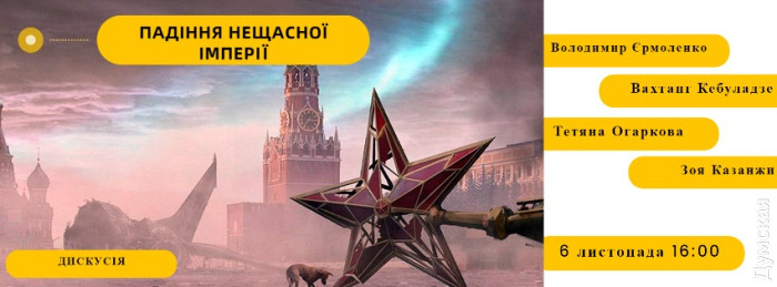 Куди піти в Одесі: Білосніжка в Оперному, вечір камерної музики в Українському та дискусія про падіння імперіїКультура і мистецтво — надійні засоби від зневіри і тривожних думок. А тому — увазі читачів — черговий випуск рубрики «Куди піти в Одесі» від «Думської» і добірка найцікавіших заходів найближчого тижня. «Думська» нагадує — не ігноруйте сигнали повітряної тривоги. ЖИВОПИС АНТОНА ОСТРОМЕЦЬКОГО У галереї Artodessa відкрилася виставка живописця, графіка та музиканта Антона Остромецького «Живопис». В експозиції представлена серія робіт у жанрі пейзажу великого та середнього формату, абстрактні та напівабстрактні композиції, виконані в період з 2019 по 2022 роки. Галерея відкрита з 13:00 до 19:00, крім понеділка. «ГОЛОВНЕ, КОЛИ?» У театрі «KowalskY» (пров. Некрасова, 2) 4 листопада покажуть виставу Театру на Чайній у жанрі трагікомедії «Головне, коли?». В основу постановки лягла п'єса «Розмова, якої не було» автора Родіона Білецького. Артисти театру порушать злободенну тему вічної зайнятості сучасної людини про те, як часом ми не встигаємо зупинитися і помітити поруч своїх друзів і рідних, щоб поговорити відверто. «Наше життя сповнене подій, якими іноді хочеться поділитися з друзями, але завжди не вистачає часу, щоб зупинитися і просто поговорити. А було б непогано хоч раз, хоч коли-небудь » — йдеться в анонсі. Старт о 18:00. Вхід за реєстрацією та благодійним внеском 150 грн. «ЗА ДВОМА ЗАЙЦЯМИ» Одеська музкомедія 4 листопада запрошує в гості, щоб від душі посміятися під час перегляду знаменитого мюзиклу про кохання і шлюб за розрахунком «За двома зайцями». Раніше театр Музкомедії звертався до цієї вистави в далекому 1955 році. Тоді роль Проні Прокопівни грала Євгенія Дембська, а Голохвастова — Еммануїл Ліберро. Через 65 років вистава знову опинилася в репертуарі театру — зі сцени знову звучать знайомі музичні цитати, мовний колорит і гумор. Старт о 18:00. Вартість квитків — 80-300 грн. АРХПРОГУЛЯНКА ОКОЛИЦЯМИ НОВОГО РИНКУ Усіх, хто цікавиться історією Одеси, 5 листопада запрошують на прогулянку околицями Нового ринку. Екскурсія проходить у рамках проєкту «Архітектура Одеси». Учасники прогулянки побувають у перших кварталах вулиці Ніжинської, у провулку Богданова, пройдуть кварталами Новосільського і вулицею Кінною, побачать розкішний двір зі статуями і багато іншого. Старт о 14:00. Вартість участі — 100-250 грн. КІНО В МУЗЕЇ У Музеї західного та східного мистецтва 5 листопада відбудеться 18-й за рахунком показ короткометражних кінострічок від українських режисерів. Цього разу до добірки увійдуть олдскульні фільми, зняті до 2010-го року на плівку. Також відмінною рисою кінострічок стануть чарівні саундтреки і якісна реконструкція подій в Україні різних років. Також до добірки увійдуть сучасні історичні кліпи. Старт о 18:00. Вартість квитків — 100 грн. ВЕЧІР КАМЕРНОЇ МУЗИКИ В Українському театрі 6 листопада відбудеться концерт «Вечір камерної музики». На сцені театру виступлять музиканти театру під керівництвом Вадима Бессараба. У програмі концерту — академічні, фольклорні та джазові твори. Зокрема, глядачі почують твори для струнного квінтету, джазового квартету та змішаних ансамблів. Концерт пройде у форматі «глядач на сцені», що дасть змогу відвідувачам спостерігати за тим, як народжується музика. Старт о 15:00. Вартість квитків — 200 грн. «ПАДІННЯ НЕЩАСНО