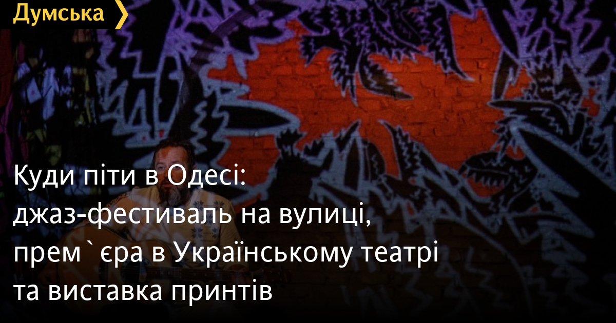 «Думська» продовжує тримати руку на пульсі культурного життя Одеси та розповідати про заходи, які варто відвідати. Цього тижня буде багато цікавого – прем'єра вистави в Українському театрі, концерт симфонічної музики в Музкомедії, виставка принтів та навіть невеликий джаз-фестиваль на «Книжці».