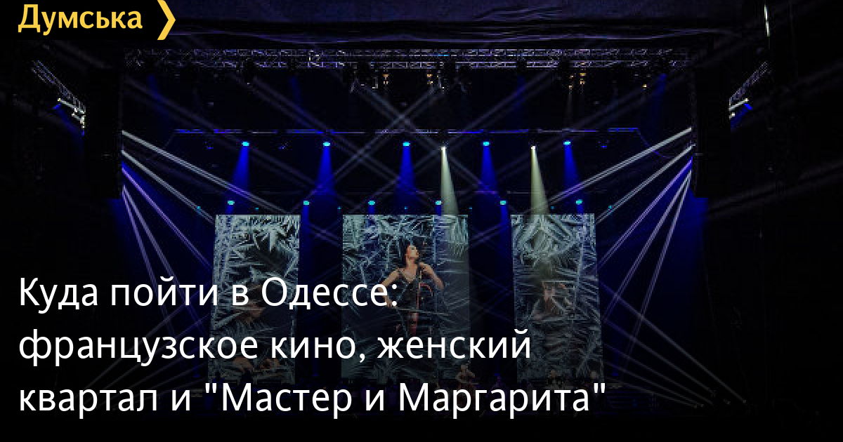 Сегодня четверг, и снова «Думская» предлагает вниманию читателей рубрику «Куда пойти в Одессе». На этой неделе в нашем городе выступят несколько известных исполнителей, стартуют долгожданные «Вечера французского кино», покажут уникальное 3D-шоу и глубокомысленный спектакль о внутреннем драконе.