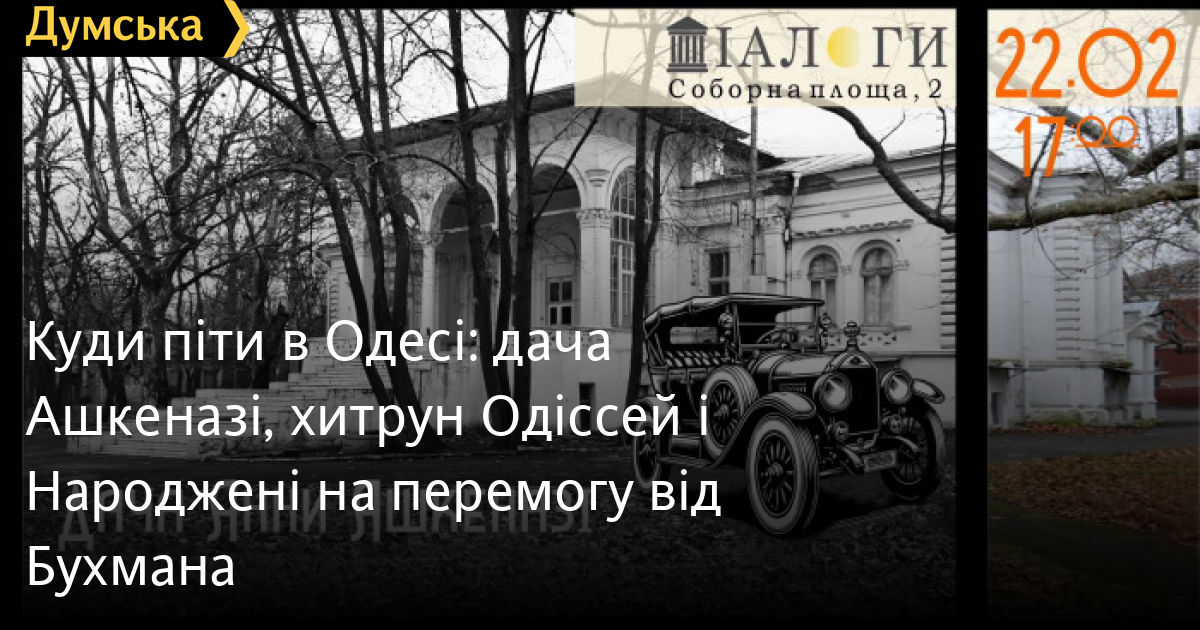 Куди піти в Одесі: дача Ашкеназі, хитрун Одіссей і «Народжені на перемогу» від БухманаПутівником для охочих цікаво провести вихідні стане рубрика «Куди піти в Одесі» від «Думської». Покладіться на наш досвід! МАГІЯ ФІЗИКИ Презентація п’ятої книги Павла Віктора «Фізика. Світло, теорія відносності, кванти, атоми та ядра» відбудеться 21 лютого у магазині «Книгарня «Є» (Кузнечна, 59). Буде можливість поспілкуватися з автором. Разом із видавництвом BookChef книгарня підготувала особливу зустріч із відомим педагогом, популяризатором науки та автором курсу відеоуроків, який підкорив YouTube. Його книги зробили фізику доступною тисячам учнів та студентів. Фізика – це не лише формули, а й ключ до розуміння світу. Павло Віктор справжній майстер своєї справи: переможець Global Teacher Prize Ukraine в номінації «Вибір українців», народний учитель України та кандидат фізико-математичних наук. Його YouTube-канал з фізики має понад 1,2 мільйона підписників, а відеоуроки переглянули більше 93 мільйонів разів. Завдяки новій книзі ви навчитеся не лише пояснювати явище мікросвіту, але навіть передбачати те, що ще не відкрито. Адже існує безліч речей, про які фізики знають, але самі явища пояснити поки що не можуть. І про все це доведеться дізнатися вже юним фізикам і майбутнім талановитим вченим. Особливість видання – унікальне поєднання теорії з практикою через QR-коди, які ведуть до відеоуроків з демонстраційними експериментами та розв’язанням задач. Старт о 18:30. Реєстрація тут. …ТА ВОКАЛІСТ З АМЕРИКИ Багатожанровий концерт пройде 21 лютого в More Music Club (Італійська, 75). Blue Roots – канонічний блюз та рок-н-рол, класні одеські музиканти на чолі з неперевершеним вокалістом Нілом із Америки. The Gills — альтернативний гурт, що поєднує у собі велику кількість жанрів від інді до прогу. Старт о 19:00. Вхід — донейшн від 100 гривень. BLACK SEA ORCHESTRA Чуттєвий вечір музики та натхнення Grande Amore у виконанні Black Sea Orchestra під орудою маестро Олесі Пістової пройде 21 лютого в Міжнародному культурному центрі UNION (Троїцька, 43). Уявіть: пристрасні ритми танго, ніжність класичних шедеврів, мелодії, що огортають душу. Цей концерт — подорож у світ кохання через музику видатних композиторів та музикантів: від магії Астора П’яццолли до хітів Стінга та Елтона Джона. Старт о 19:00. Квитки тут. ШОУ ДВОХ ДЕЛІЄВИХ Виставу One Fool Show («Шоу одного дурня») покажуть 21 та 28 лютого у Будинку клоунів (Ольгієвська, 23). Хоча у виставі, окрім самого Георгія Делієва, бере участь і його донька – Яна Делієва, тож учасників таки двоє. Це нова прем’єрна вистава у жанрі фізичного театру, створена у Франції в 2024 році. Вона дуже припала до смаку парижанам. Що й не дивно, адже жанр пантоміми народився саме у Франції, а Делієв – неперевершений майстер цього мистецтва, це його фірмовий стиль. Відомий серіал «Маски-шоу» говорить сам за себе. Так само і One Fool Show наповнений яскравими динамічними гегами, трюками, танцями, пантомімою, музичною ексцентрикою, магією та, головне, тим самим гумором ранніх «Масок». Коли Георгія Делієва запитали про стиль вистави, він описав його як сюрреалізм, панк і абсурд. Вистава справді є одночасно і смішною, і філософською. Герой Делієва – знову той самий бунтар-дурник, якого так полюбили фанати «Маски-шоу». А Яна з дівчинки-бешкетниці перетворилася на розкішну діву, яка поступово «перетягує ковдру» на себе. Старт о 18:00. Квитки 