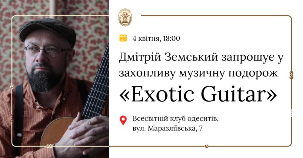 Куди піти в Одесі: «Київська перепічка», Руссов і орган у церквіБезліч глядацьких інтересів ми врахували в рубриці «Куди піти в Одесі» від «Думської». Насолоджуйтесь! «ДІАЛОГИ ПОГЛЯДІВ» Фотовиставка «Діалоги поглядів» відкриється 4 квітня в галереї «Золотий янгол» (Пушкінська, 51). Учасниками виставки стануть 14 особливих фотографів з громадської організації «Фонд «Особлива молодь України»» (спільний проєкт з Лігою єврейського волонтерства «Фотошкола») та 6 професіоналів з Одеської обласної організації Національної Спілки фотохудожників України. На вернісажі також відбудеться виступ інклюзивного театру «Толерантність». Старт о 17:00. Вхід вільний. ВИБУХОВІ ЕМОЦІЇ Гастрольну виставу «Київська перепічка» покажуть в Одеському академічному музично-драматичному театрі імені Василя Василька (Пастера, 15). Це більше, ніж вистава. Це емоційний вибух, який перенесе вас у саме серце Києва, де звичайний кіоск стає місцем, де переплітаються тривога, надія та сила духу. Ірма Вітовська у головній ролі – це не просто акторка, це емоційний ураган, який змусить вас відчути кожну миттєвість. Життя на межі, але з незламною вірою у майбутнє. Старт о 18:00. Квитки тут. ШУМАН ТА БЕТХОВЕН Концерт Національного Одеського філармонійного оркестру відбудеться 4 квітня у Великій залі Одеської філармонії імені Давида Ойстраха (Буніна, 15). Ви почуєте гру піаністки Тетяни Шафран, котра підкорює публіку своїм «рідкісним поєднанням ясності та сили» (All Music Guide) та «пронизливою, технічно точною і яскравою» музикальністю. Молода українська піаністка не новачок у найпрестижніших концертних залах світу, включно з Shenzhen Grand Theatre, Lindeman Hall і Palau de la Musica. Вона виграла понад 20 міжнародних конкурсів піаністів. За диригентським пультом – народний артист України Юрій Янко. Диригент виступав у таких всесвітньо відомих залах як Музикферайн (Відень), Карнеґі-хол (Нью-Йорк), Рудольфінум (Прага) та в багатьох кращих залах європейських, азійських та американських столиць. Професор, кавалер ордену «За заслуги» ІІІ ступеня, лауреат Міжнародного конкурсу Вахтанга Жорданія. Концерт для фортепіано з оркестром ля мінор, Op. 54 витонченого композитора-романтика Роберта Шумана неодмінно змусить битися серце слухача частіше. Шуман музично транформує боротьбу за своє кохання. А кохана композитора, Клара Шуман, писала про концерт після прем'єри: « який багатий на винаходи, який цікавий від початку до кінця, який свіжий і який прекрасний цілісний твір!». Симфонія 2 ключової фігури класичної музики Людвіга ван Бетховена смілива, натхненна, авантюрна, генерує й утримує бадьорий ентузіазм, демонструючи силу та рішучість композитора, який знаходить сили для опору долі. Згодом Гектор Берліоз напише про цей твір так: «У цій симфонії посміхається усе». Старт о 18:00. Квитки тут. ЧАРИ ГІТАРИ У захопливу музичну подорож різними країнами та континентами запрошує 4 квітня Всесвітній клуб одеситів (Маразліївська, 7). Звучатиме музика Японії, Балкан, Китаю, Латинської Америки, а також Гаваїв, Ямайки та Ірландії. Цей вечір відкриє для вас нові грані дивовижного інструменту – гітари. Виступатимуть лауреати міжнародних конкурсів гітарист Дмитрій Земський, кларнетист Михаіл Ксіда та скрипалька Наталя Мазепа. Початок о 18:00. Вхід вільний. Благодійний внесок за бажанням від 100 гривень. РОК ТА БЛЮЗ Rock’n’Roll Night пройде 4