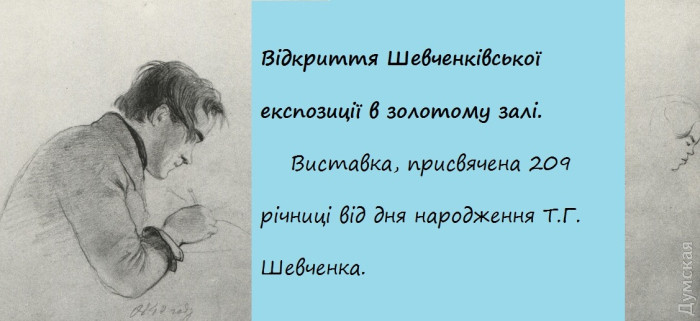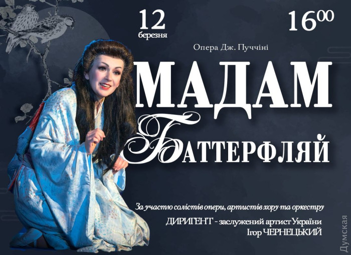 Куди піти в Одесі: «Мадам Батерфляй» в Опері, «Брехуха» в Музкомедії та романтичний концерт у ФілармоніїНаближаються вихідні, а отже час будувати плани на вікенд. «Думська» зібрала найцікавіші події культурного життя міста в рубриці «Куди піти в Одесі». ШЕВЧЕНКІВСЬКА ЕКСПОЗИЦІЯ До 209-річчя від дня народження великого українського поета Тараса Шевченка у Золотій залі Літературного музею відкрилася Шевченківська експозиція. Тут представлено нові надбання музею та старі експонати з Шевченкіани — книжки, репродукції, світлини, документи, які допоможуть відвідувачам простежити життєвий шлях Кобзаря. Одне із завдань виставки — розповісти про біографічний зв'язок поета з Одесою. Музей відчинений щодня, крім понеділка, з 10:00 до 20:00. «БРЕХУХА» Виставу «Брехуха» за однойменною п'єсою Мейо та Еннекена представлять в Одеській музкомедії 10 березня. Артисти театру покажуть глядачам історію двох молодих пар, які, незважаючи на свій юний вік, сваряться так, ніби прожили разом уже не один десяток років. Подружжя шукає способи, як воскресити вмираючі почуття та сім'ю, але найчастіше ці методи лише погіршують ситуацію. Зрештою подружжя знаходить свій рецепт щастя — для цього їм потрібно вкрасти немовля! Старт о 18:00. Вартість квитків — 100-400 грн. CHEEK TO CHEEK Легендарні твори Луї Армстронга та Елли Фіцджеральд прозвучать на концерті Cheek to Cheek у клубі Perron №7 10 березня. Хіти великих американських джаз-вокалістів 1930-40 років прозвучать у виконанні Ярослава Трофімова, дуо Jazzettes і квартету Володимира Батракова. 50% зібраних на концерті коштів буде спрямовано на технічне забезпечення протиповітряної оборони міста. Старт о 18:00. Вартість квитків — free donation. ВЕСНА В СТИЛІ ТАНГО Благодійний концерт «Весна у стилі танго» відбудеться 11 березня в кафедральному соборі святого Павла. На імпровізовану сцену вийде Black Sea Orchestra під керівництвом Олесі Пістової. Музиканти виконають всесвітньо відомі шедеври. Частину зібраних коштів буде спрямовано на допомогу українським захисникам і на заходи з підтримки Кірхи. Старт о 18:00. Вхід вільний. «БАЛАМУТИ» Яскраву комедію «Баламути» покажуть 11 березня в Одеському обласному драматичному театрі. Герої, які втомилися від одноманітного нудного життя на схилі років, прагнуть додати фарб у свої дні і наважуються на дивні, а часом і зовсім божевільні вчинки. «Не дивлячись на поважні роки, вони чудять і баламутять так, як вам і не снилося», — йдеться в анонсі. Старт о 18:00. Вартість квитків — 200 грн. ПАВЕЛ ВИШЕБАБА Український поет, музикант та екологічний активіст Павло Вишебаба виступить 11 березня в Urban Music Hall. Від початку російського вторгнення Павло зі зброєю в руках захищає батьківщину. При цьому він веде активну творчу діяльність. «Тексти книги Павла Вишебаби «Тільки не пиши мені про війну» стали літературним літописом почуттів багатьох українців у режимі онлайн», — розповідають організатори зустрічі. 100% зібраних коштів підуть на потреби українських захисників. Старт о 19:00. Вартість квитків — 290-690 грн. «МАДАМ БАТЕРФЛЯЙ» Одеська опера запрошує поціновувачів творчості Джакоммо Пучінні на перегляд опери «Мадам Батерфляй» 12 березня. Твір вважається одним із найбільш драматичних у світовому оперному репертуарі. У центрі сюжету — юна японська гейша Чіо-Чіо-Сан. Дівчина носить традиційне кімоно, в якому вона, наче на крилах метелик