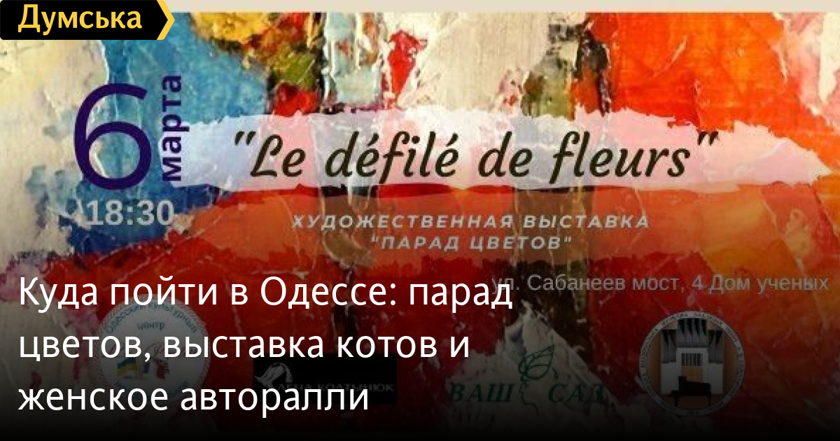 Сколько женщине цветов не дари, а она все равно в окошко смотрит. Если свозить любимую в теплые страны пока не получается, сводите ее в театр или на концерт – пусть развеется. Список лучших культурных событий недели ищите в нашей рубрике «Куда пойти в Одессе».