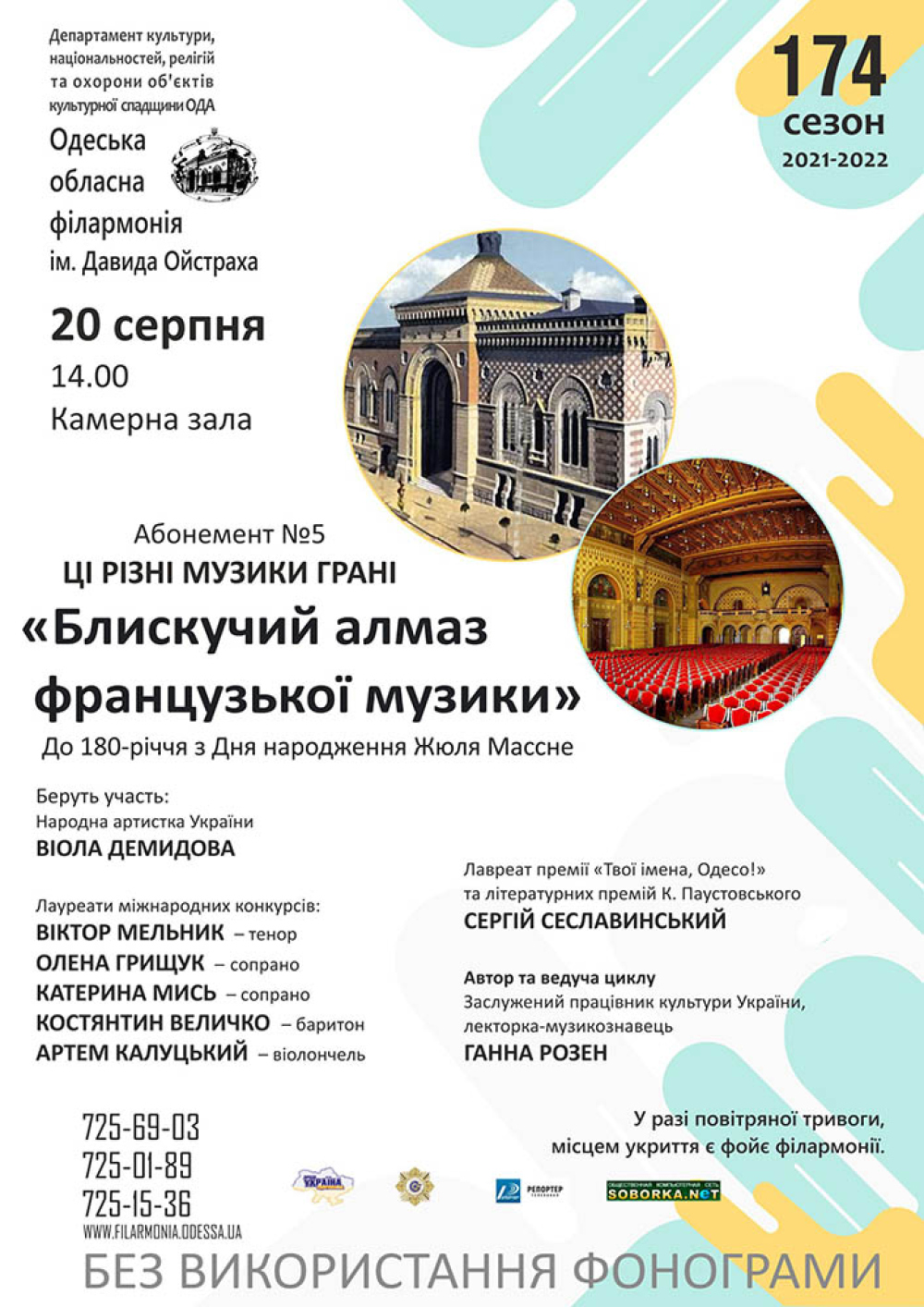 Куди піти в Одесі: виставка I see ua flag, концерт Едгара Вінницького та «Дивна вистава»Залишилися лічені дні до початку осені, але ви ще встигнете зарядитись літніми емоціями, якщо скористаєтеся порадами рубрики «Куди піти в Одесі». Цього тижня варіантів цікаво провести дозвілля буде чимало – вистави, виставки, поетичні виступи, лекції та концерти класичної музики. «Думська» нагадує – не ігноруйте сигнали повітряної тривоги. «АБСТРАКТНЕ ТА ВІДОБРАЖЕНЕ» Один із варіантів провести своє дозвілля на вихідні – сходити до галереї Artodessa, що у Міському саду. Нещодавно там відкрилася виставка живопису та фотографії «Абстрактне та відображене». Це спільний проект Олени Коламбет та Олександра Синельникова. Автори представили картини та фотографії, які об'єднані загальними мистецькими та філософськими ідеями. У Олени – роботи напівабстрактні та символічні, у Олександра – обіграють реальність та створюють нове бачення. Галерея відкрита щодня, окрім понеділка, з 13:00 до 19:00. «ЦІ РІЗНІ МУЗИЧНІ ГРАНІ» Концерт «Ці різні музичні грані. Блискучий алмаз французької музики» відбудеться 20 серпня у залі Одеської філармонії. Він присвячений 180-річчю від дня народження французького композитора Жюля Массне. Його твори виконають артисти Одеської філармонії ім. Давида Ойстраха. Старт о 14:00. Вартість квитків уточнюйте. ДЖАЗ НА БАЛКОНІ У суботу, 20-го серпня, під балконами джаз-клубу «Перон №7» та прямо навпроти одеської «Книжки» відбудеться черговий джаз-концерт. Цього разу глядачів порадують своїми виступами Ярослав Трофімов та Jazzettes. Відвідувачі зможуть насолодитися класичним джазом Луї Армстронга та Ели Фіцджеральд. Виручені гроші підуть на підтримку українських захисників. Старт о 14:00. Вартість квитків – free donation. «ЗАПОРОЖЕЦЬ ЗА ДУНАЄМ» В Одеському театрі опери та балету 20 серпня покажуть комічну оперу «Запорожець за Дунаєм» за мотивами твору українського композитора Семена Гулака-Артемовського. В основу сюжету лягли реальні факти з історії українського народу, а саме період створення Задунайської січі. У спектаклі задіяні українські народні пісні та танці. Вокальні партії поєднуються із розмовними діалогами. Старт о 16:00. Вартість квитків – 100-400 грн. «ДИВНА ВИСТАВА» У «Театрі на Чайній» покажуть спектакль під назвою «Дивна вистава» за п'єсами Девіда Айвза. Це одна з перших вистав театру, яка йшла ще на Карантинній і тоді показ проходив протягом двох вечорів. Так само відбудеться й цими вихідними. За словами організаторів, на глядачів чекають два захоплюючі вечори в компанії мух-одноденок, Троцького та шимпанзе. Але головне, що важливо в умовах воєнних реалій — глядачі дійдуть висновку, що фраза «від нас нічого не залежить» докорінно не вірна, тому що саме від нас залежить все. Старт о 17:00. Вартість квитків – уточнюйте. «СЕРЦЕ НАВПІЛ» В Українському театрі 20 серпня відбудеться вистава-одкровення «Серце навпіл», створена за двома новелами Марії Матіос та спеціально написаними авторкою для цієї постановки кількома ексклюзивними сценами. «Трагічні події минулого століття в Україні на прикладі історій декількох українських та єврейських сімей розкривають ідею нескореності людського духу. Герої, попри жахливі суспільно-політичні обставини,знаходять сили як для опору, так і власне для життя. Ці історії не про пристосування, ці історії про прийня